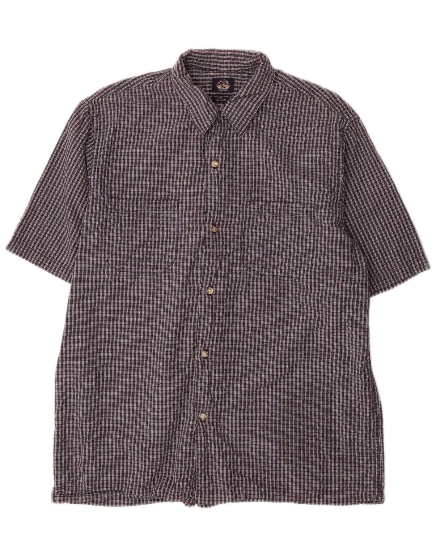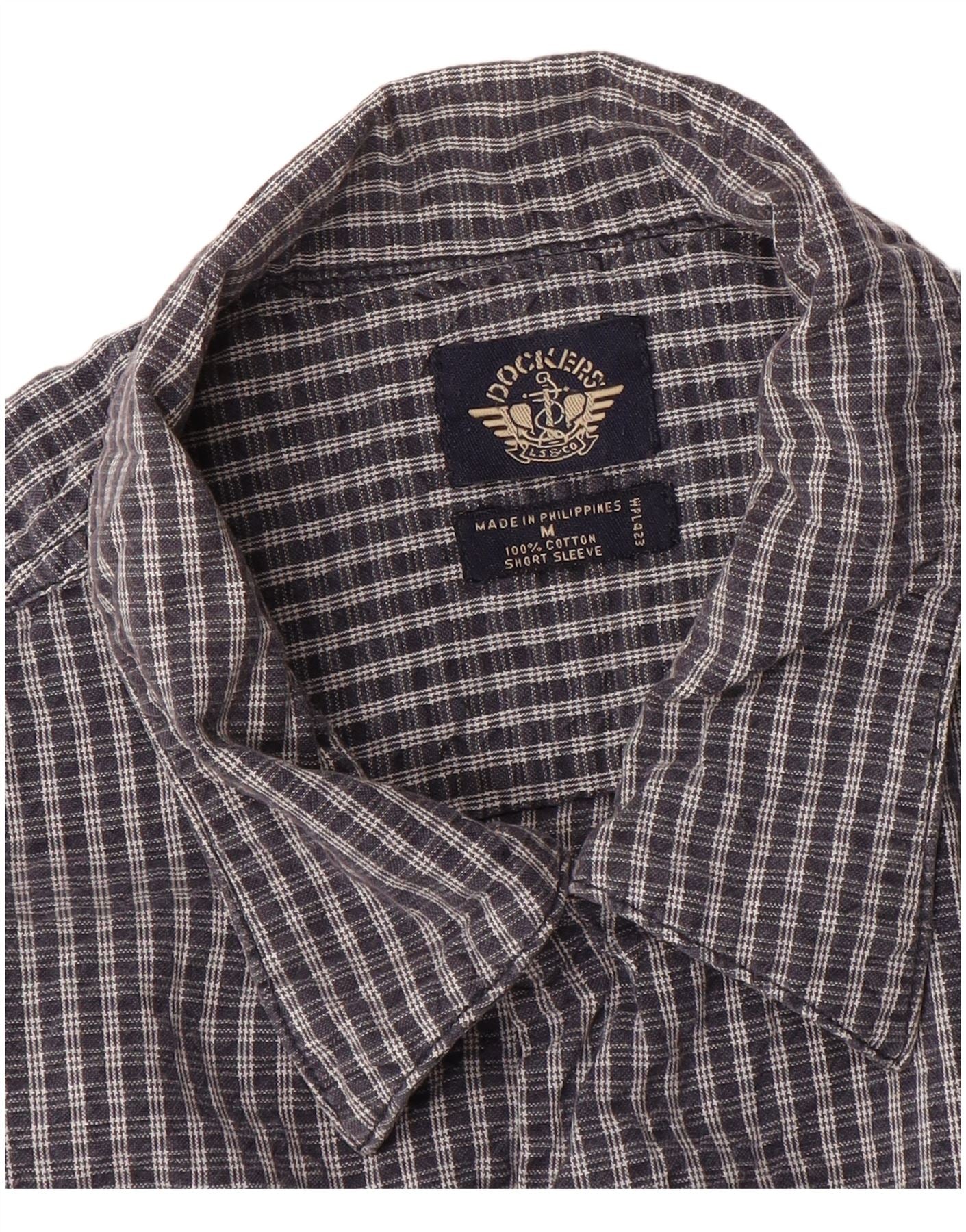 Camisa masculina de manga curta DOCKERS de algodão xadrez azul marinho médio