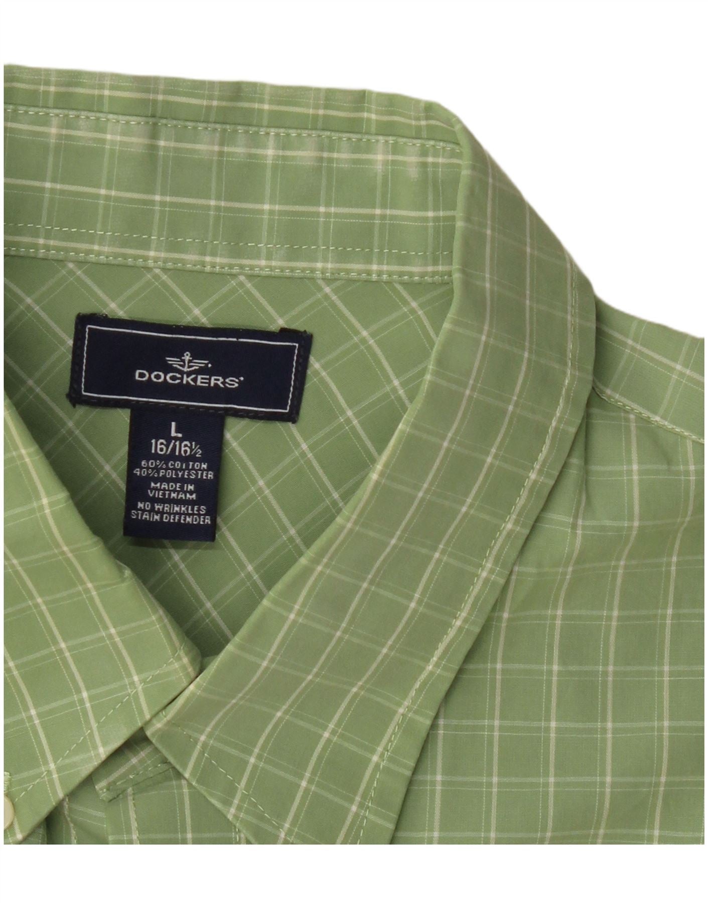 Camisa masculina de manga curta DOCKERS tamanho 16 1/2 grande algodão xadrez verde