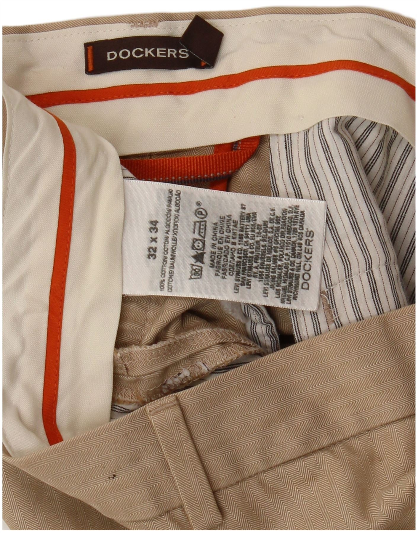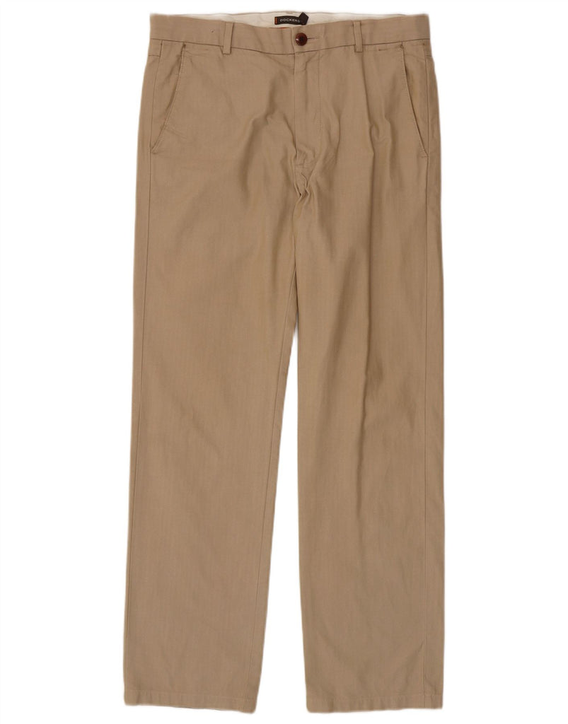 DOCKERS Mens Straight Casual Trousers W32 L30 Beige Herringbone Cotton