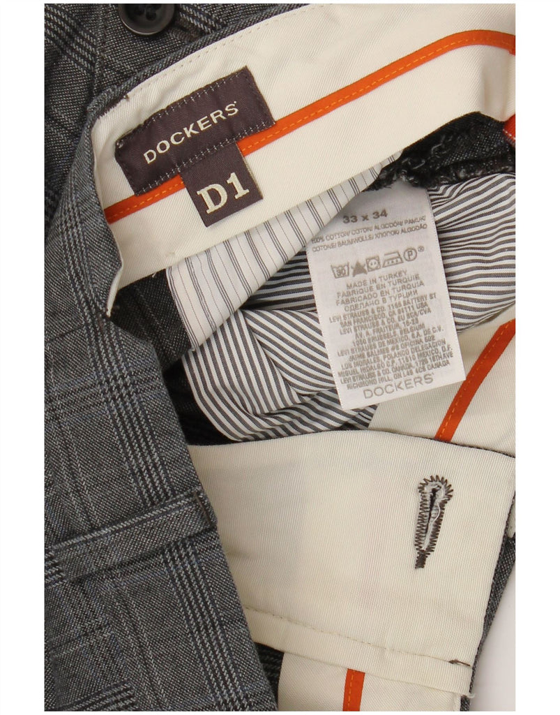 DOCKERS Mens Straight Chino Trousers W33 L27 Grey Houndstooth Cotton
