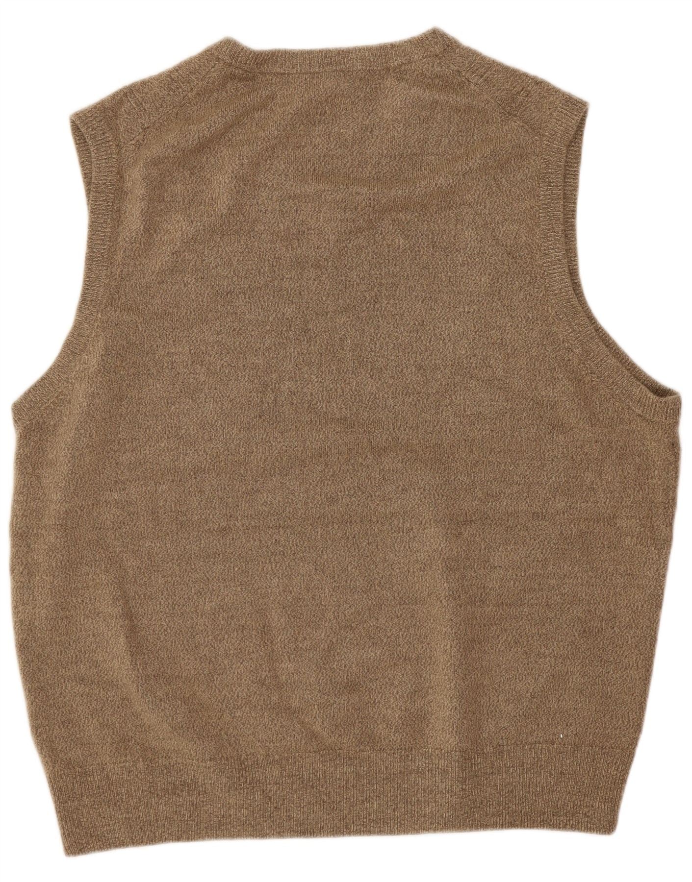 - Descrição da IA: Este colete masculino Dockers é feito de malha 100% acrílica marrom suave. Possui decote em V clássico e corte sem mangas. O design do pulôver oferece fácil desgaste. Um padrão de malha geométrica sutil adiciona textura e interesse visual. O ajuste regular garante um estilo confortável e atemporal.