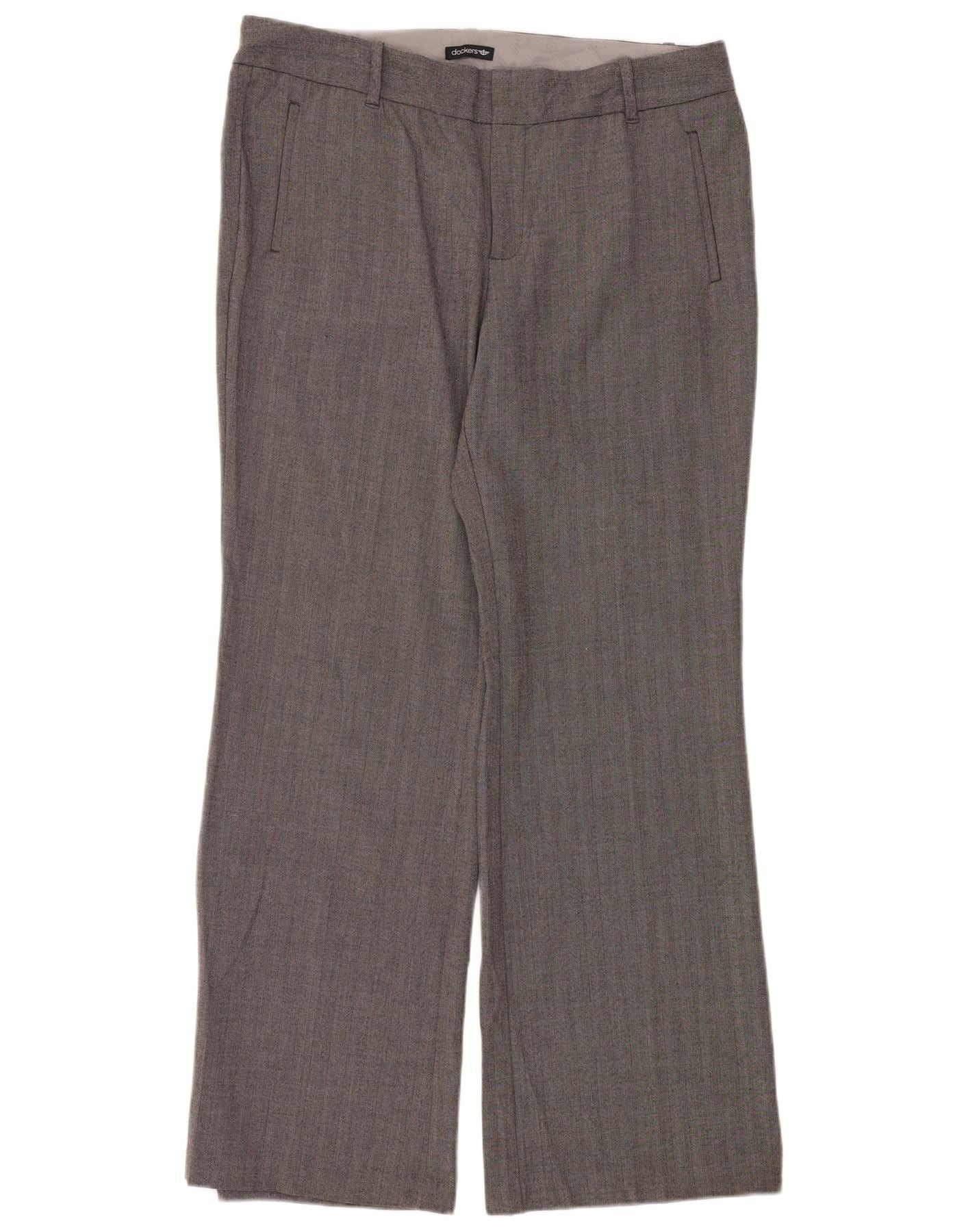 Calça casual feminina Dockers Bootcut US 16 XL W38 L34 cinza espinha de peixe