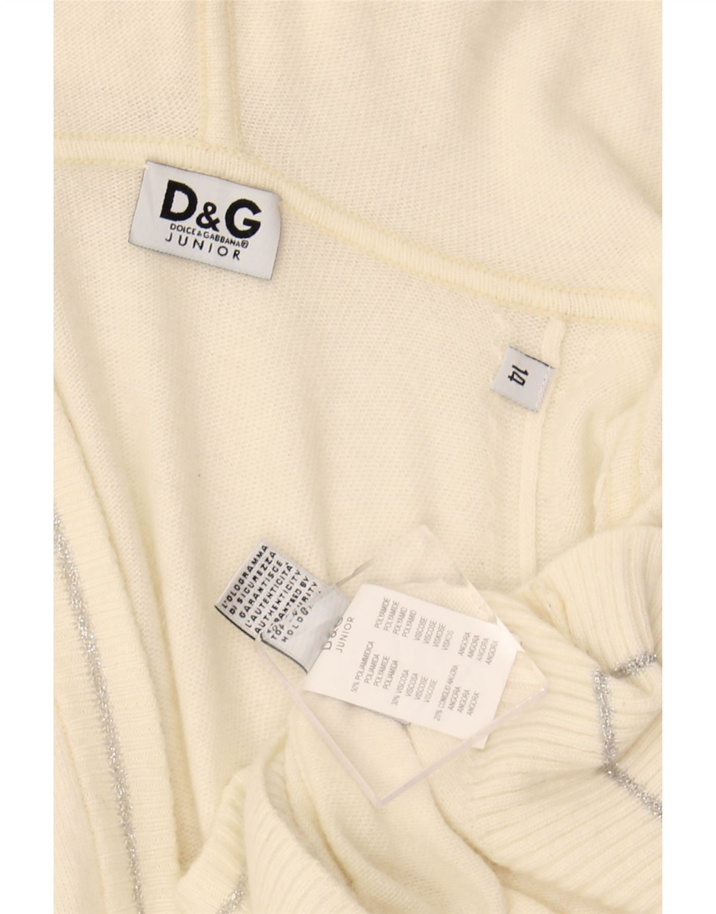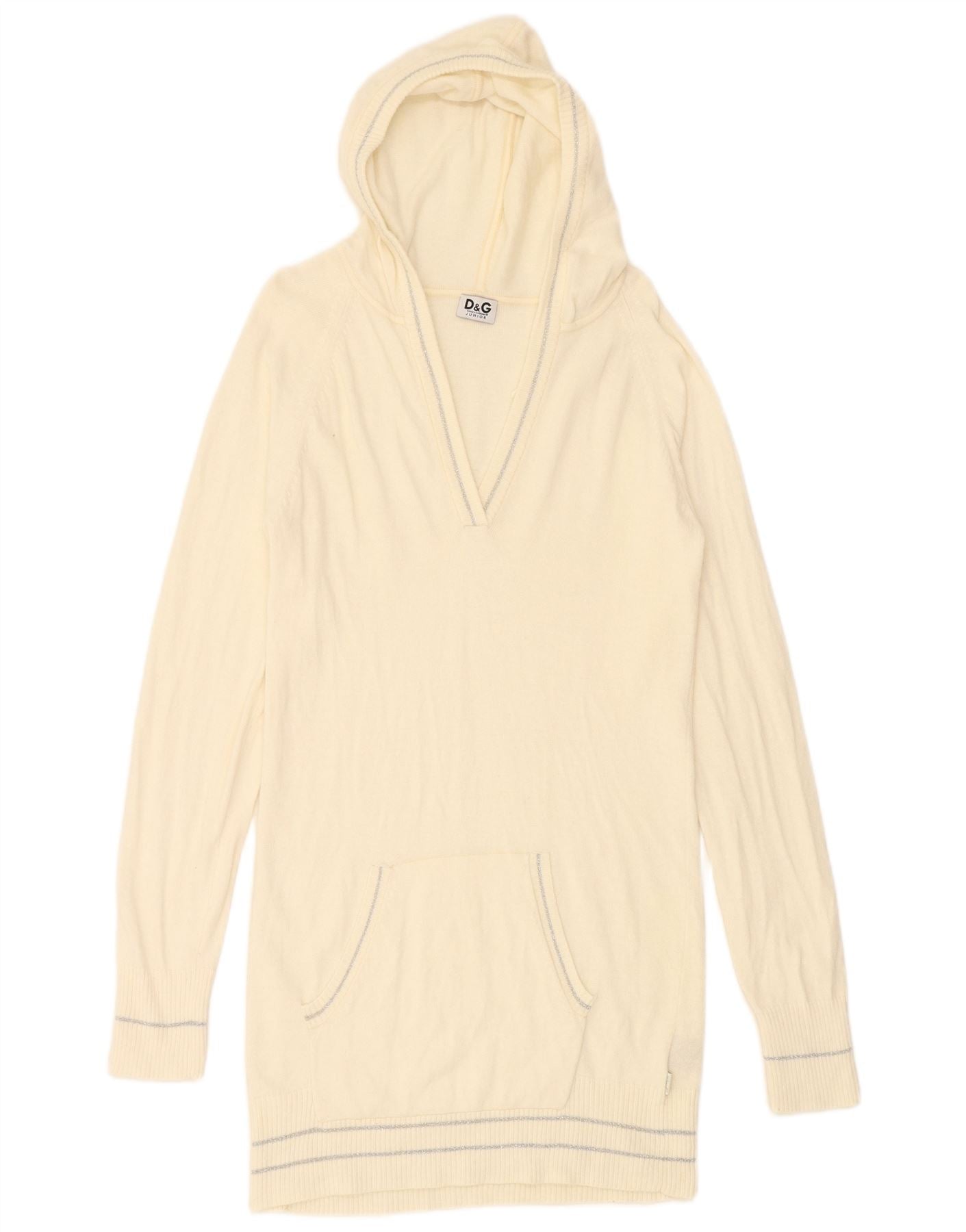 DOLCE & GABBANA Girls Hooded Jumper Dress 13-14 Years Off White Polyamide
