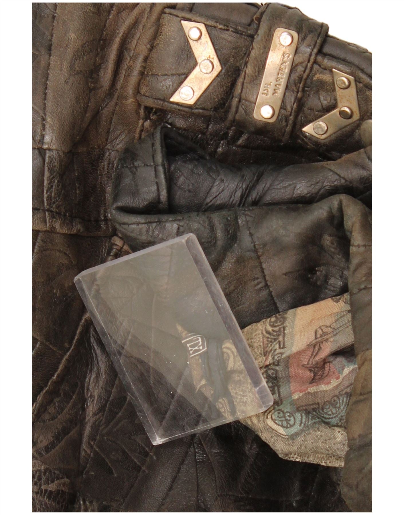 Jaqueta feminina de couro cropped DR MARTENS UK 18 XL marrom patchwork