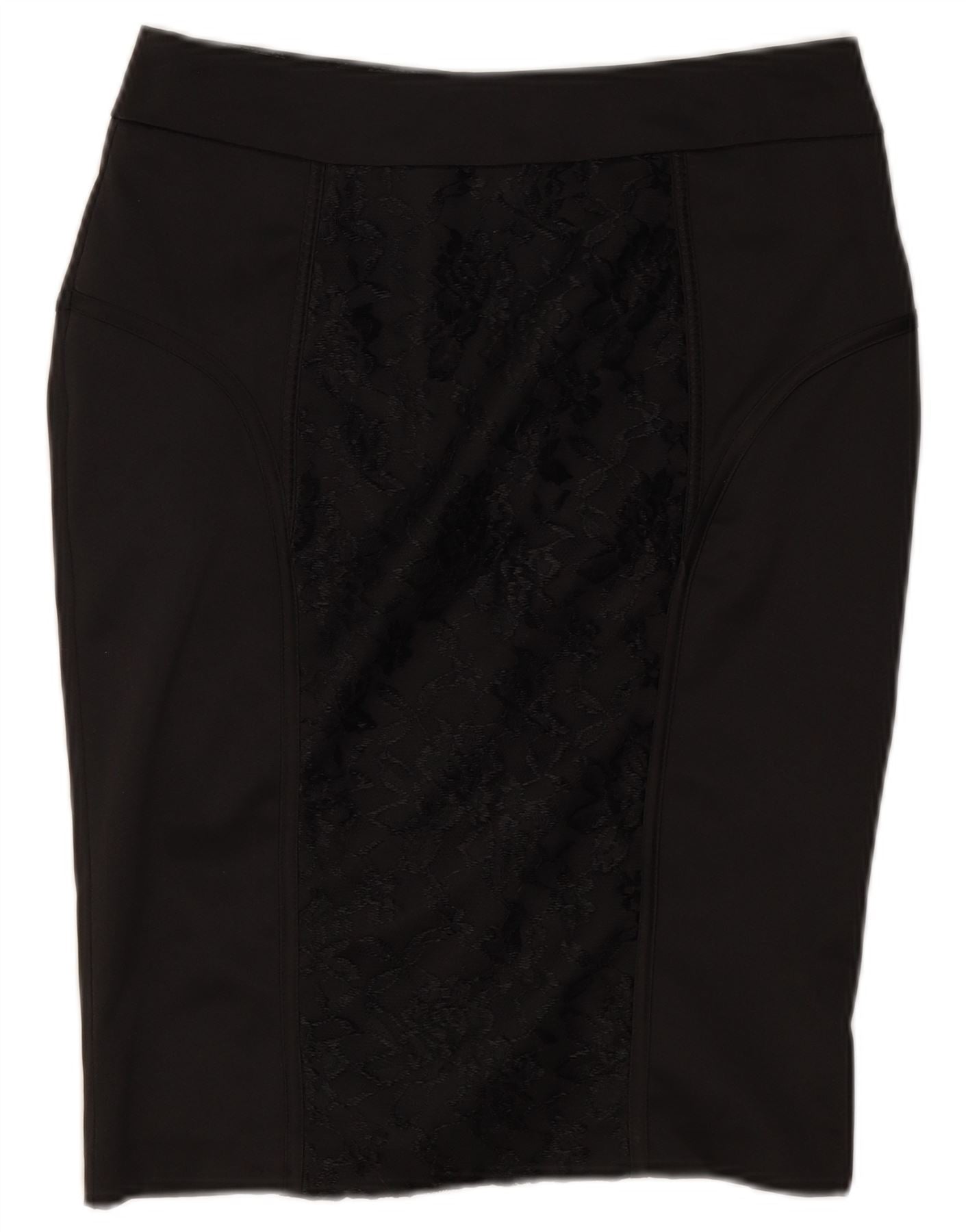 Saia lápis feminina Dunnes UK 8 pequena W26 poliéster floral preto