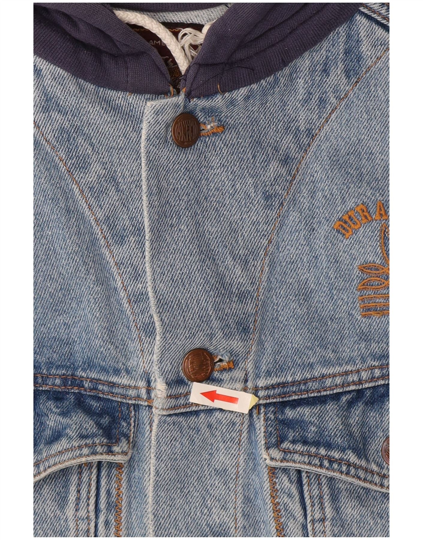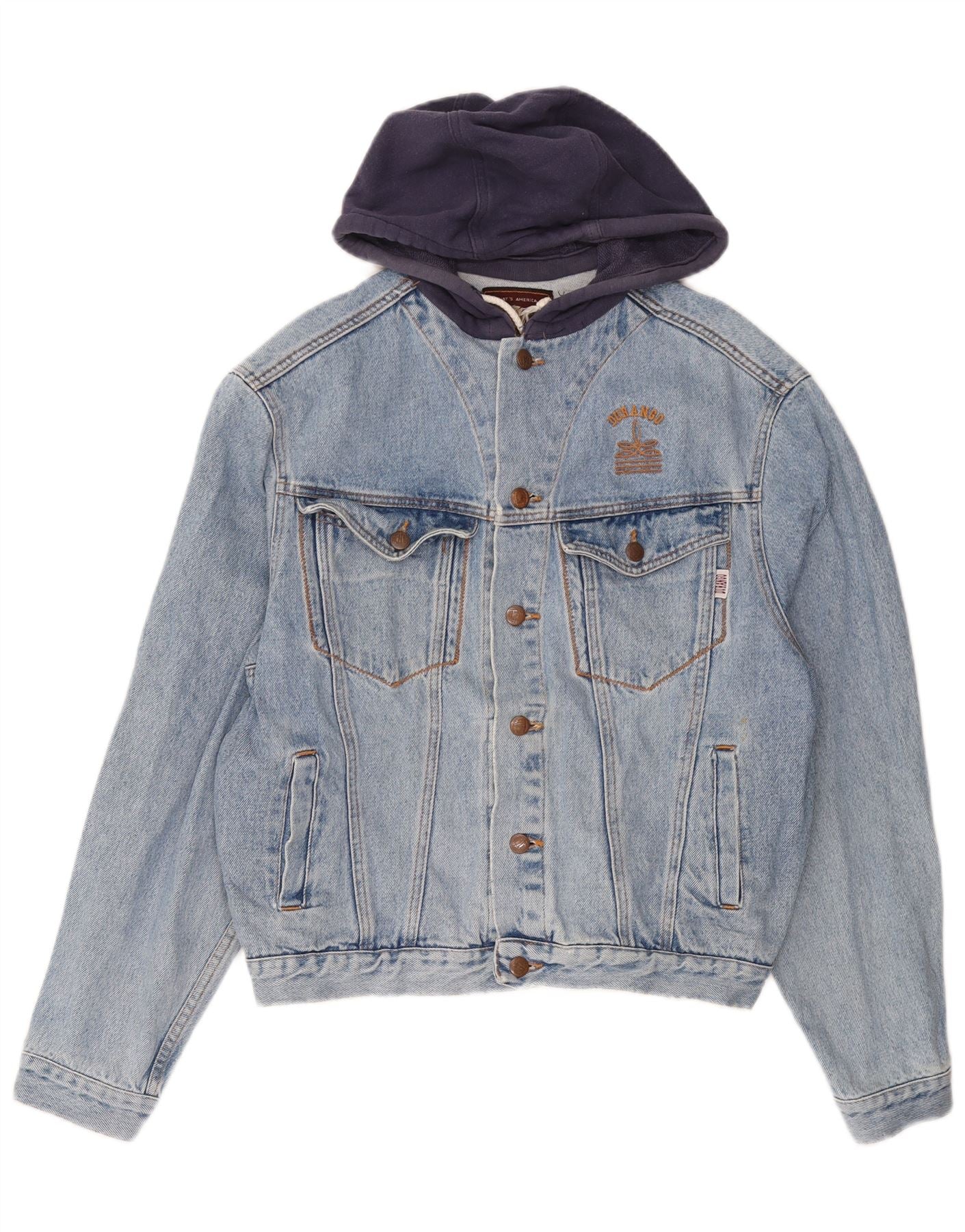 Jaqueta jeans masculina com capuz DURANGO UK 40 grande algodão colorblock azul
