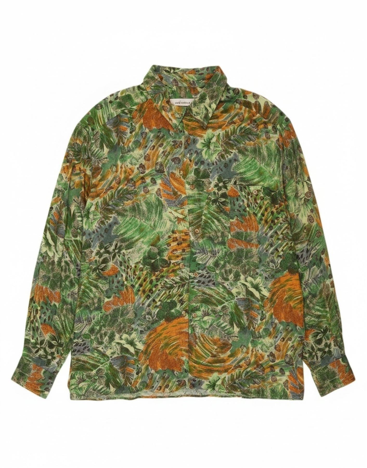 - Descrição da IA: Esta camisa masculina da Costa Leste é confeccionada em tecido de rayon macio, oferecendo um caimento suave e fluido. Apresenta um padrão floral e abstrato multicolorido vibrante, misturando verdes, laranjas e marrons. O decote com colarinho e a frente com botões completos proporcionam uma estrutura clássica. As mangas compridas terminam com punhos elegantes. Projetado com um ajuste descontraído, garante um uso confortável e uma silhueta descontraída. Esta camisa de estilo tropical é perfeita para um look casual, mas distinto.