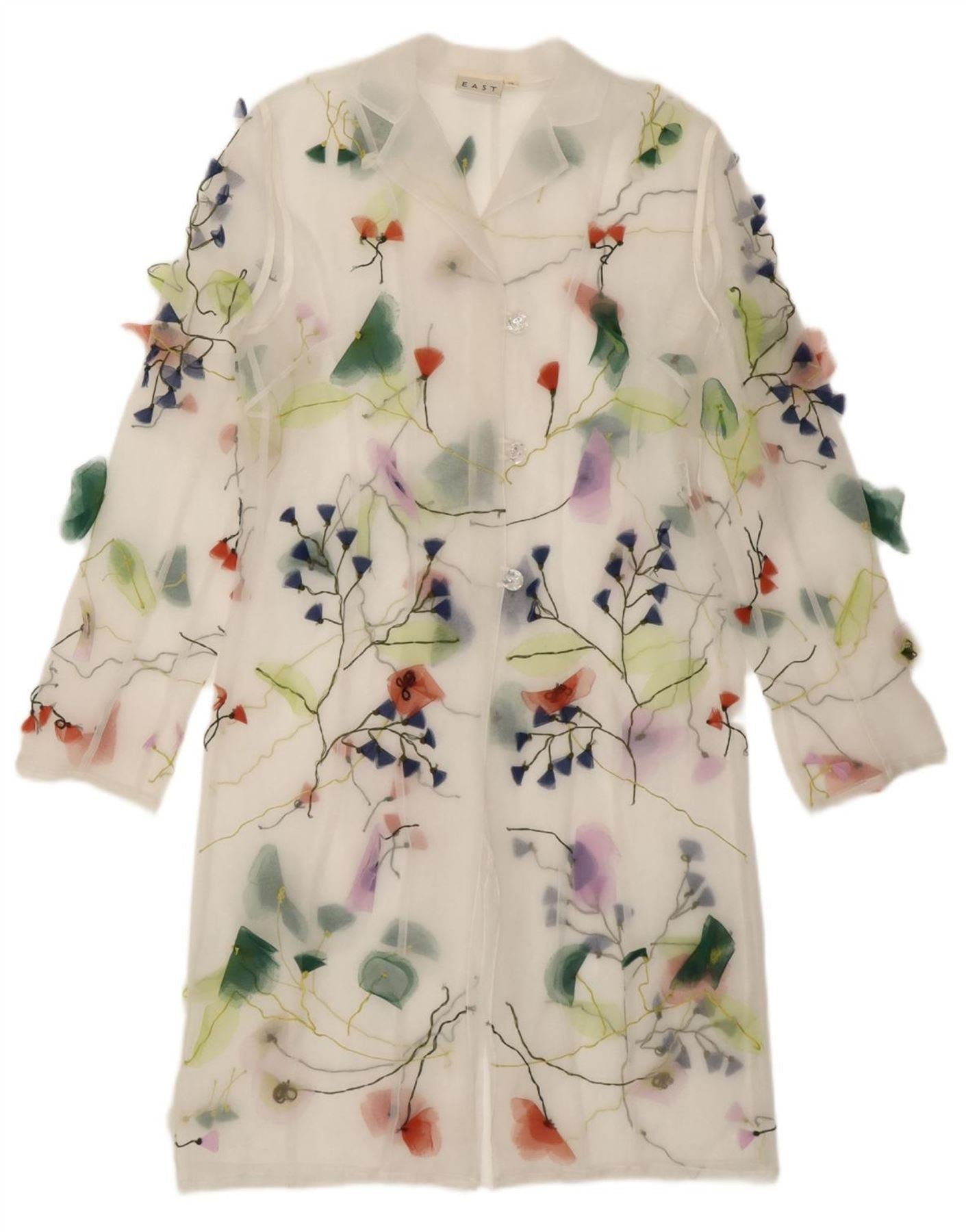 EAST Womens See Through Longline Cardigan Top UK 10 Small Off White Floral