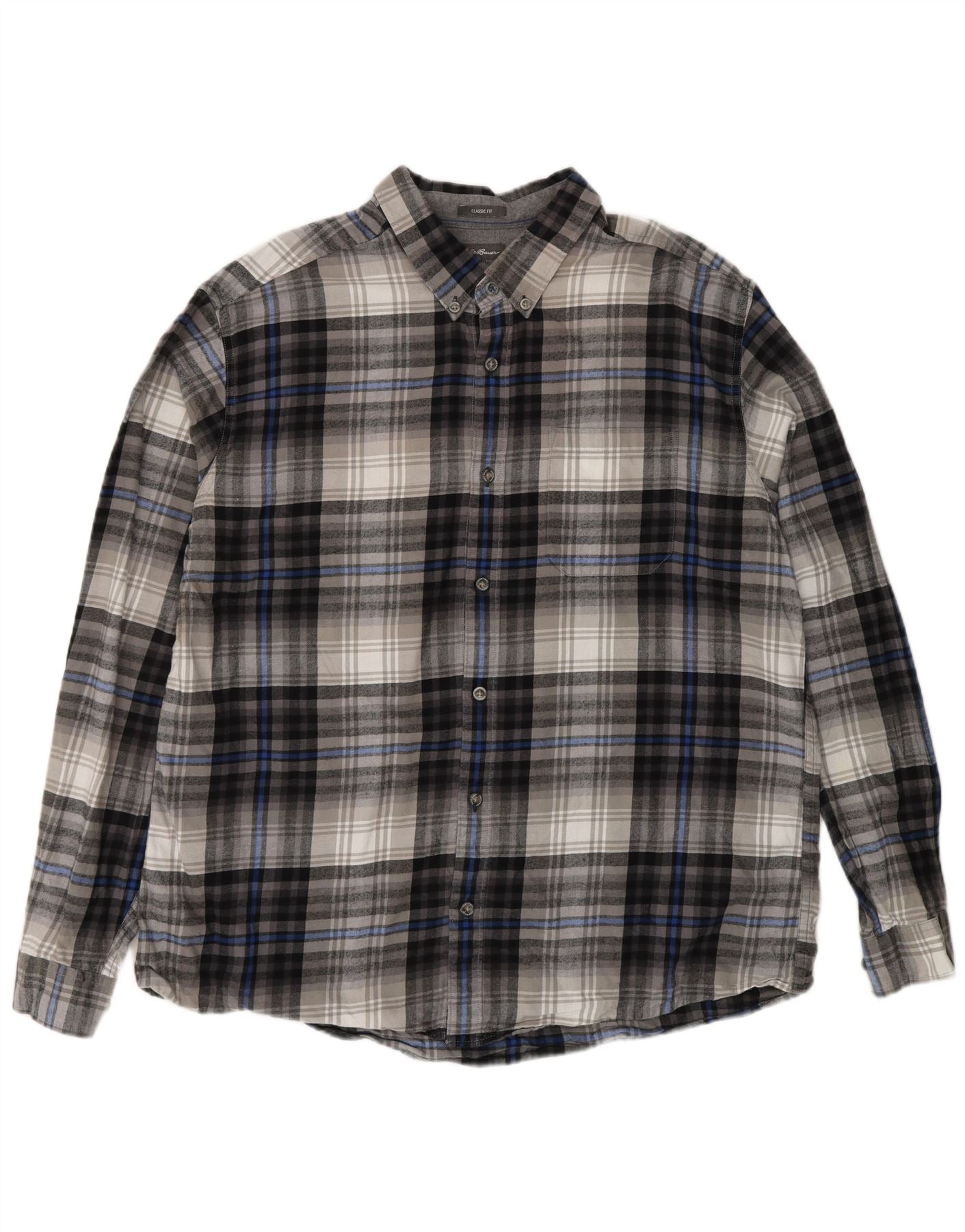 EDDIE BAUER Camisa masculina de flanela de ajuste clássico XL cinza xadrez algodão