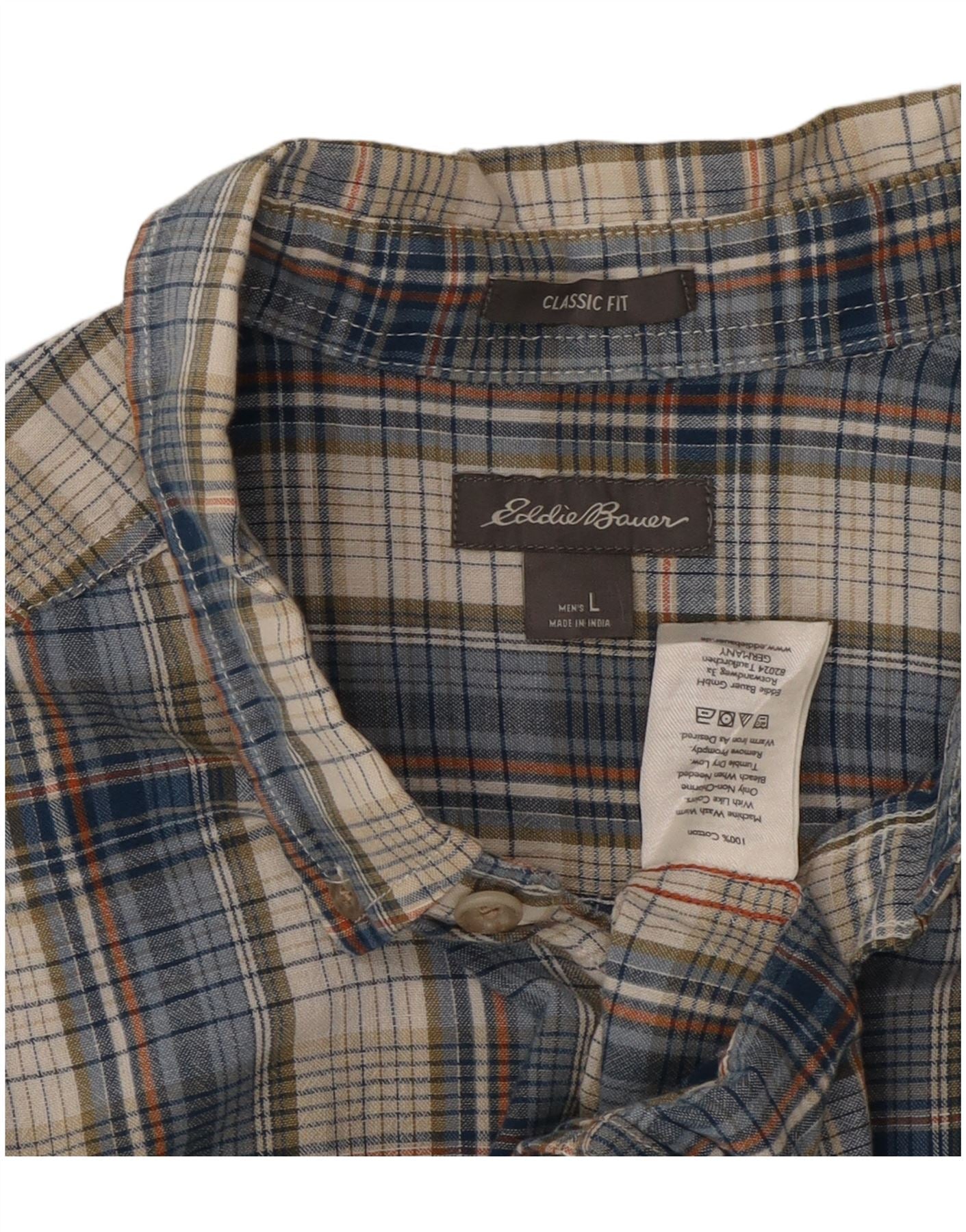 EDDIE BAUER Camisa masculina clássica de manga curta grande algodão xadrez azul