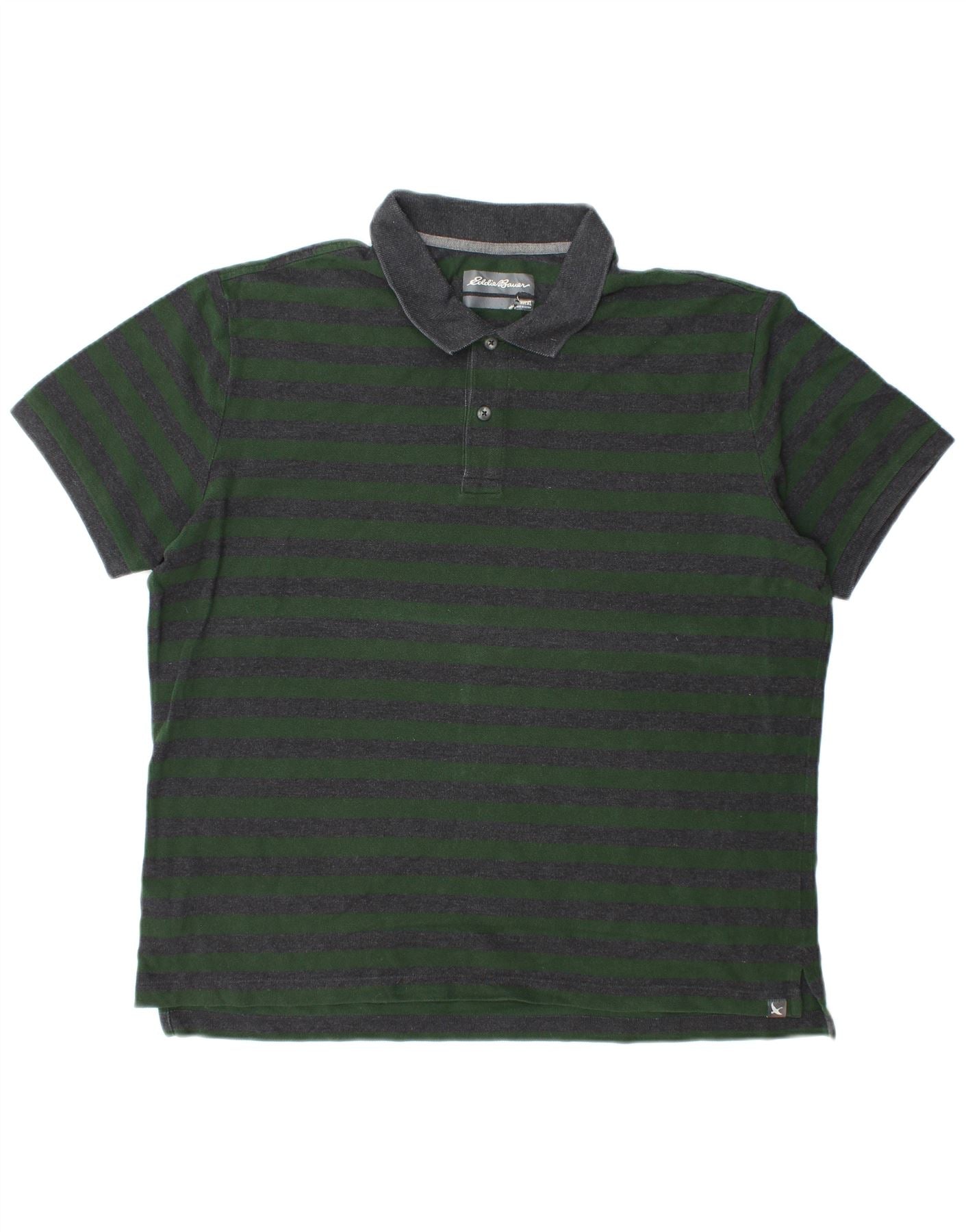 EDDIE BAUER Camisa polo masculina XL algodão listrado verde