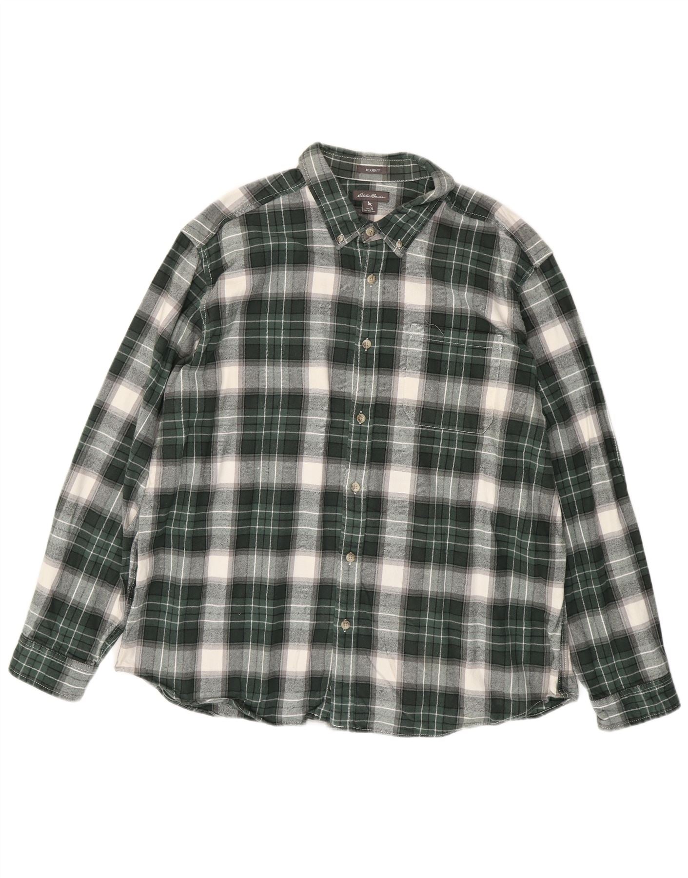 EDDIE BAUER Camisa masculina de flanela com ajuste relaxado XL verde algodão xadrez