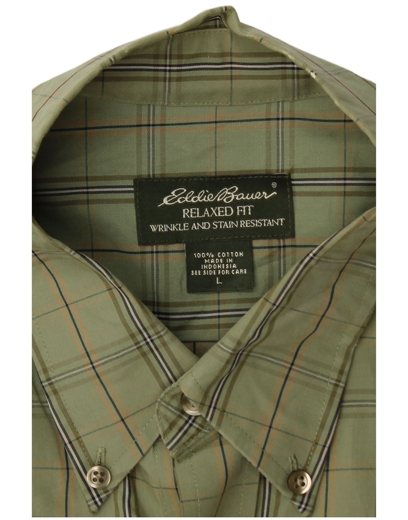 EDDIE BAUER Camisa masculina de ajuste relaxado, grande algodão xadrez verde