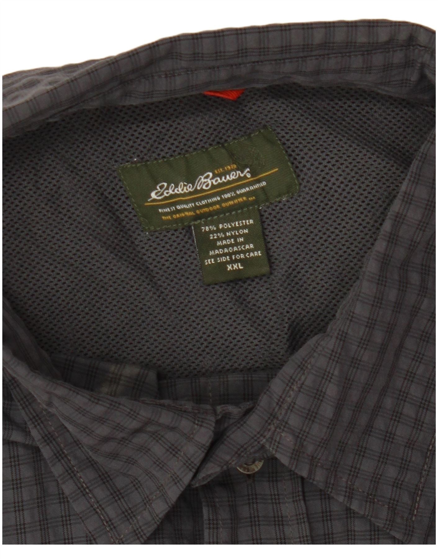 EDDIE BAUER Camisa masculina de manga curta 2XL poliéster xadrez cinza
