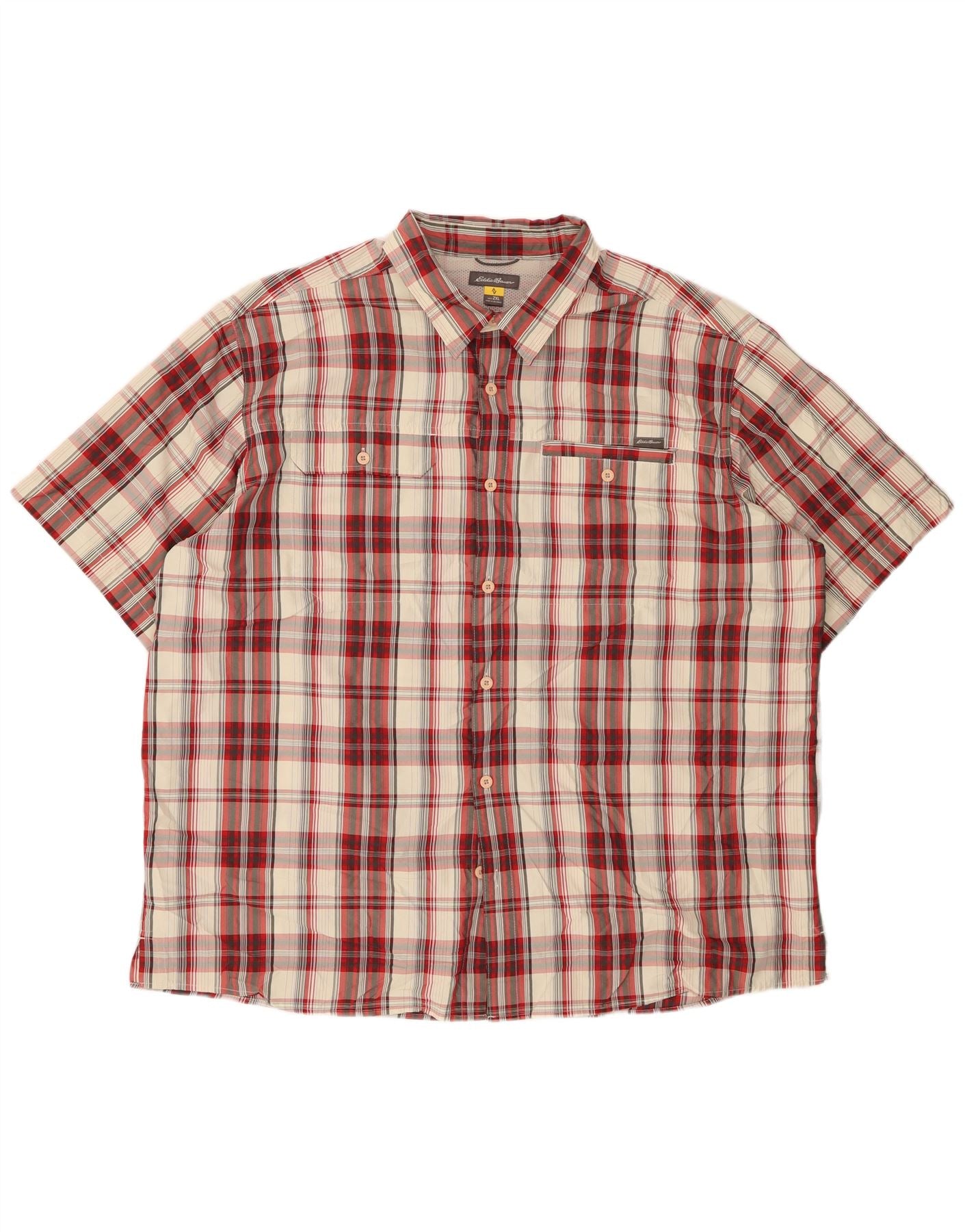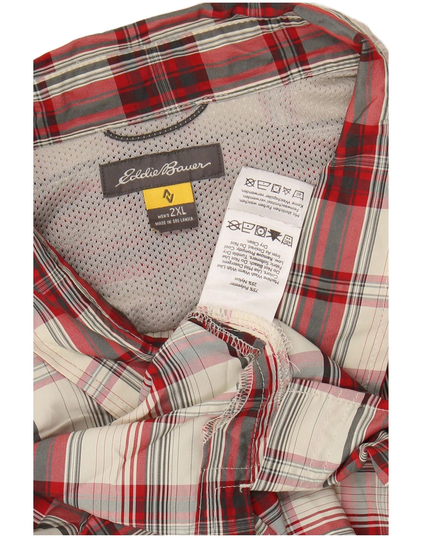 EDDIE BAUER Camisa masculina de manga curta 2XL poliéster xadrez vermelho