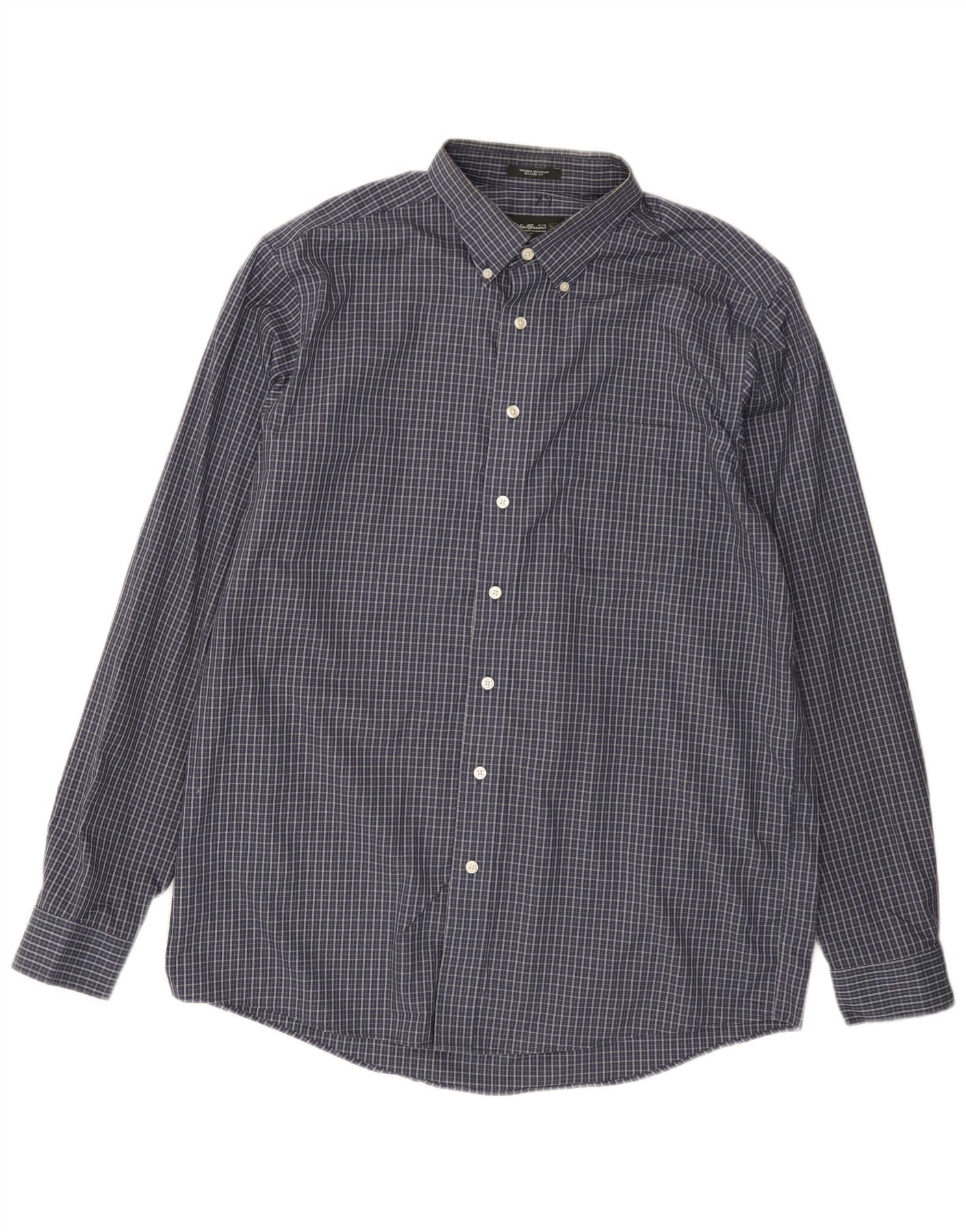 EDDIE BAUER Camisa masculina alta e relaxada, grande, azul marinho, xadrez, algodão