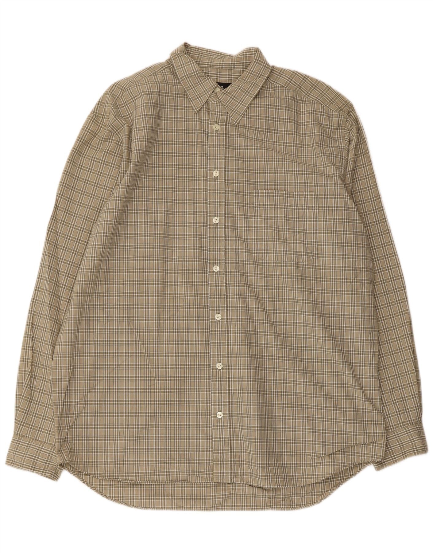 Camisa alta masculina EDDIE BAUER grande algodão xadrez cáqui