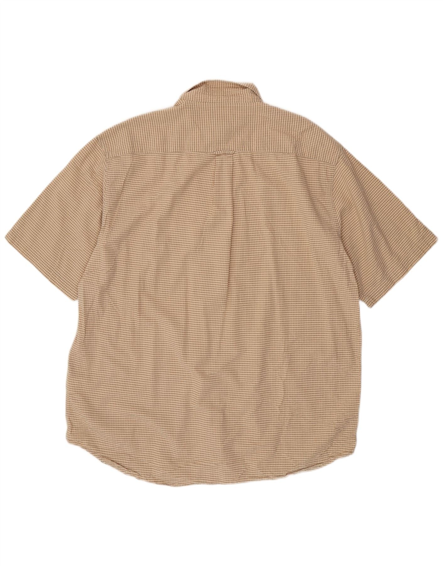 EDDIE BAUER Camisa masculina alta de manga curta XL bege xadrez algodão