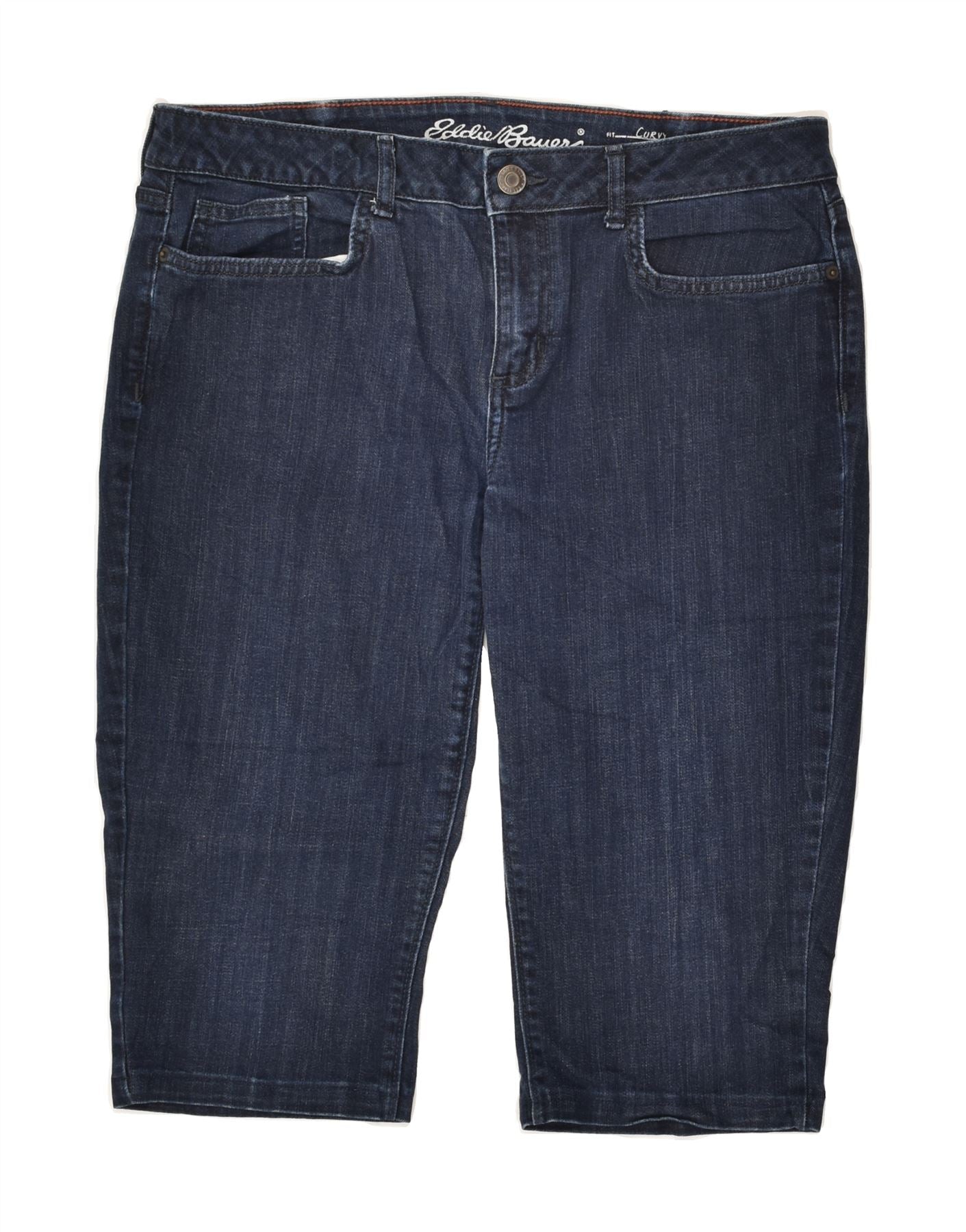 EDDIE BAUER Shorts jeans feminino curvilíneo EUA 10 grande W32 algodão azul marinho