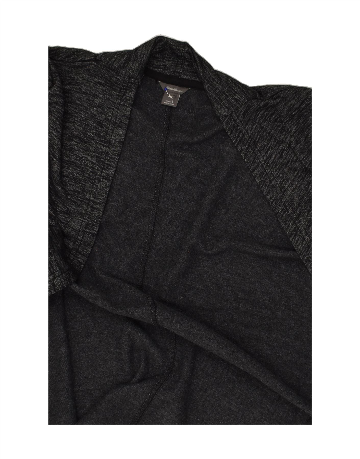 EDDIE BAUER Suéter cardigã feminino aberto Reino Unido 16 grande algodão manchado cinza