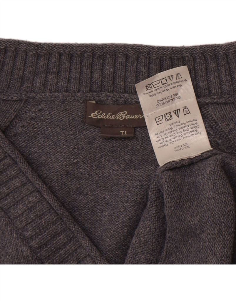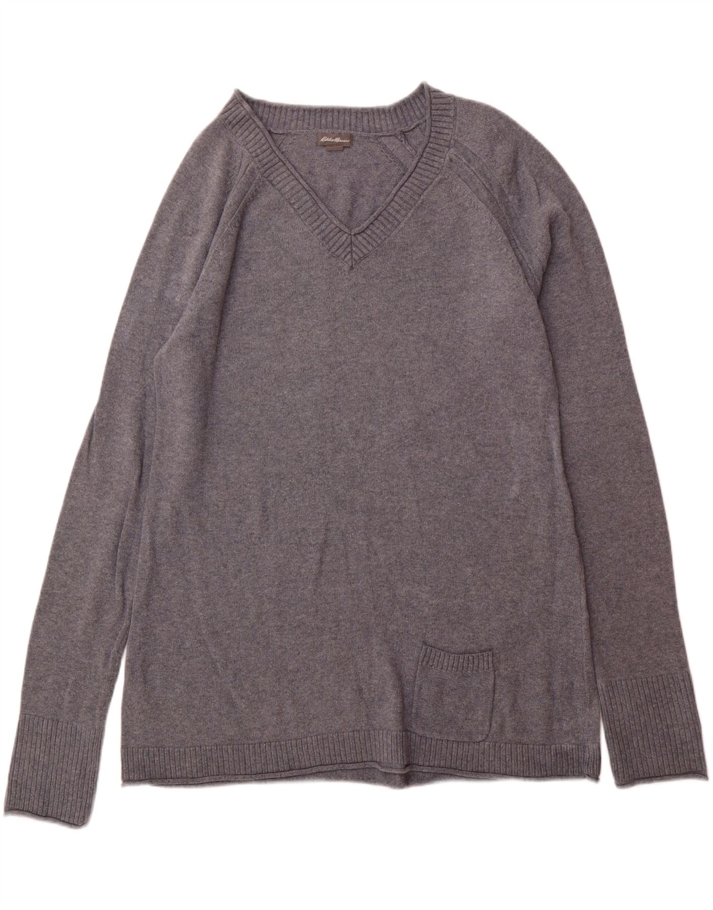 EDDIE BAUER Suéter feminino com decote em V Reino Unido 16 grande algodão cinza