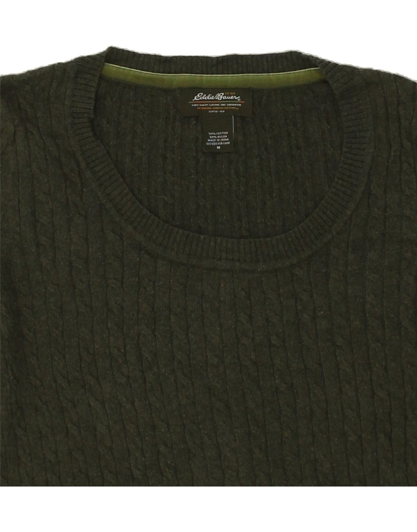 EDDIE BAUER Suéter feminino com gola redonda Reino Unido 14 algodão verde médio