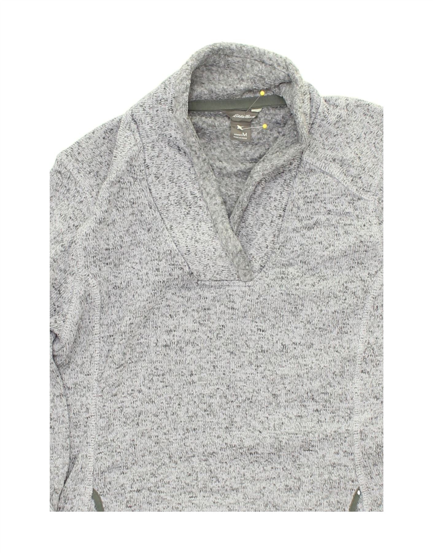 EDDIE BAUER Suéter feminino com gola xale UK 12 cinza médio manchado