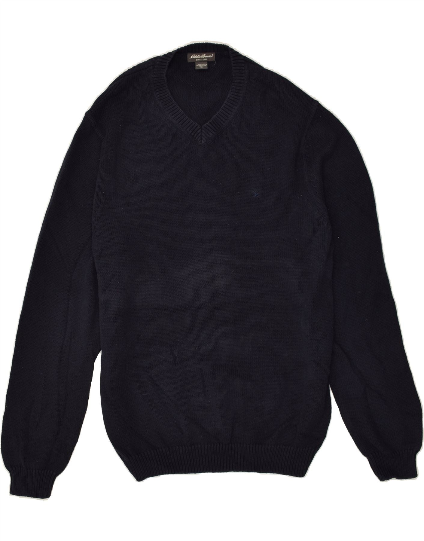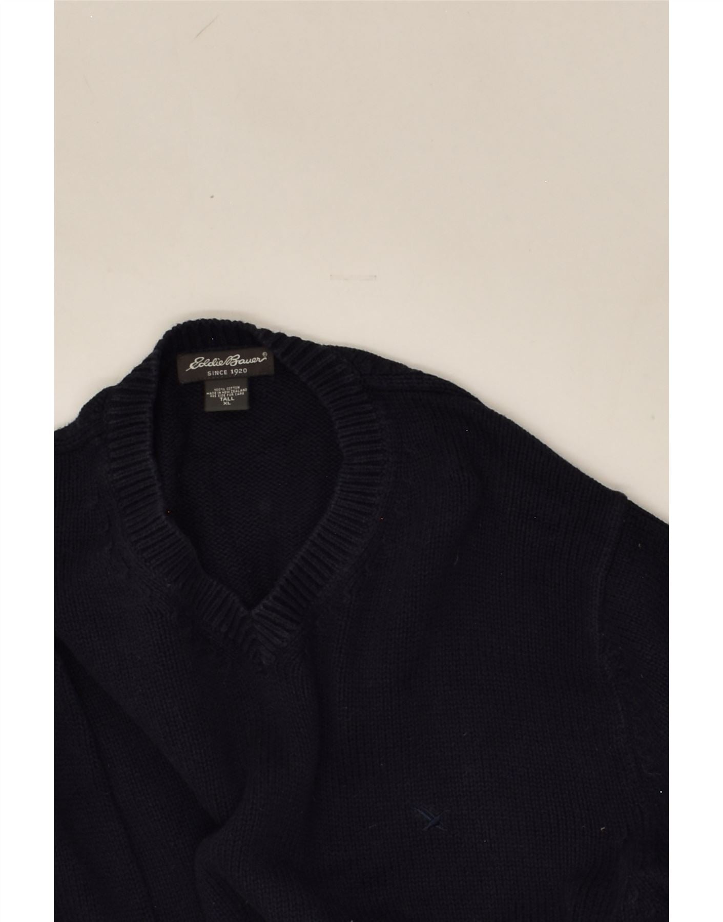 EDDIE BAUER Suéter masculino alto com decote em V XL azul marinho algodão
