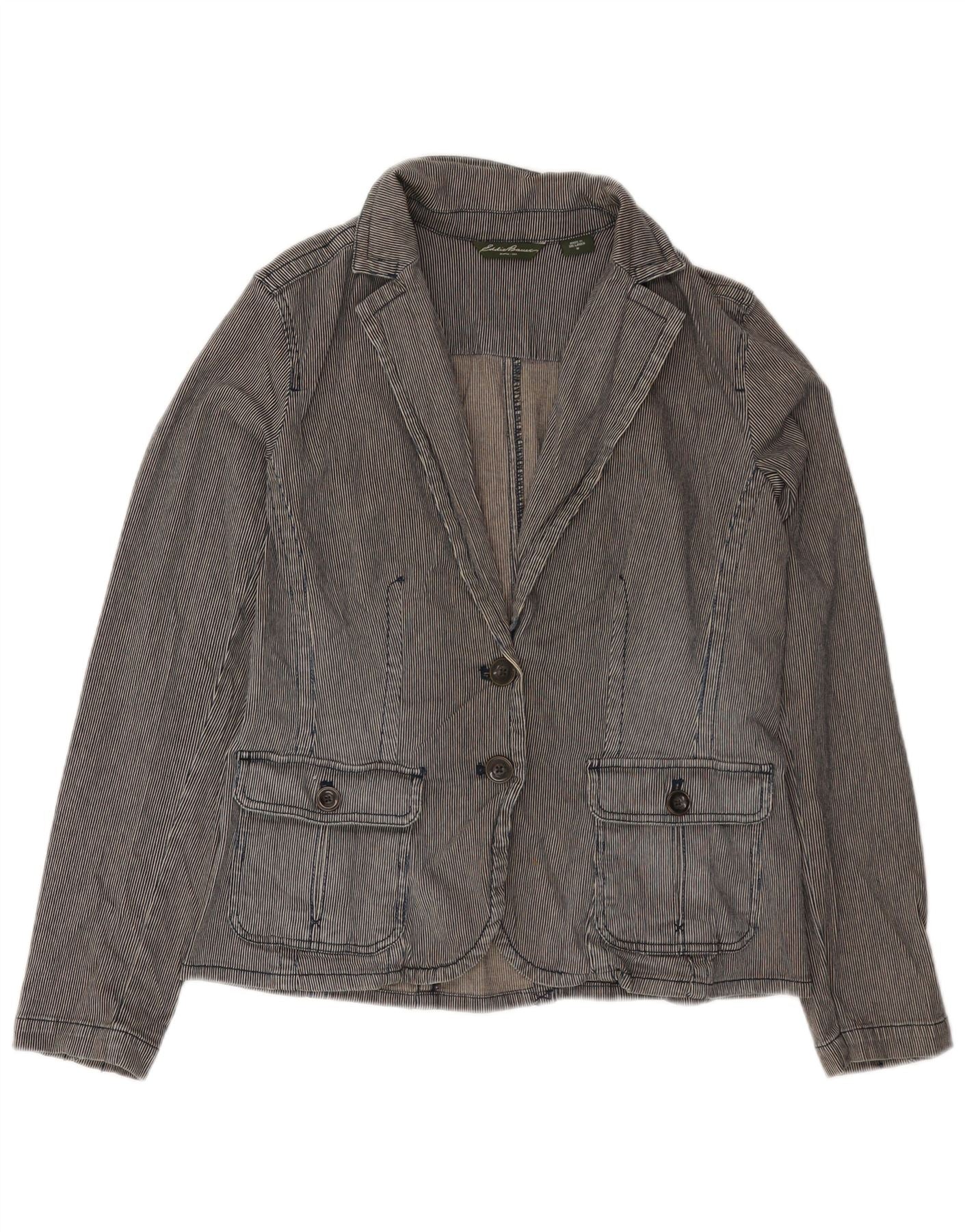 EDDIE BAUER Jaqueta blazer feminina de 2 botões Reino Unido 12 risca de giz cinza médio