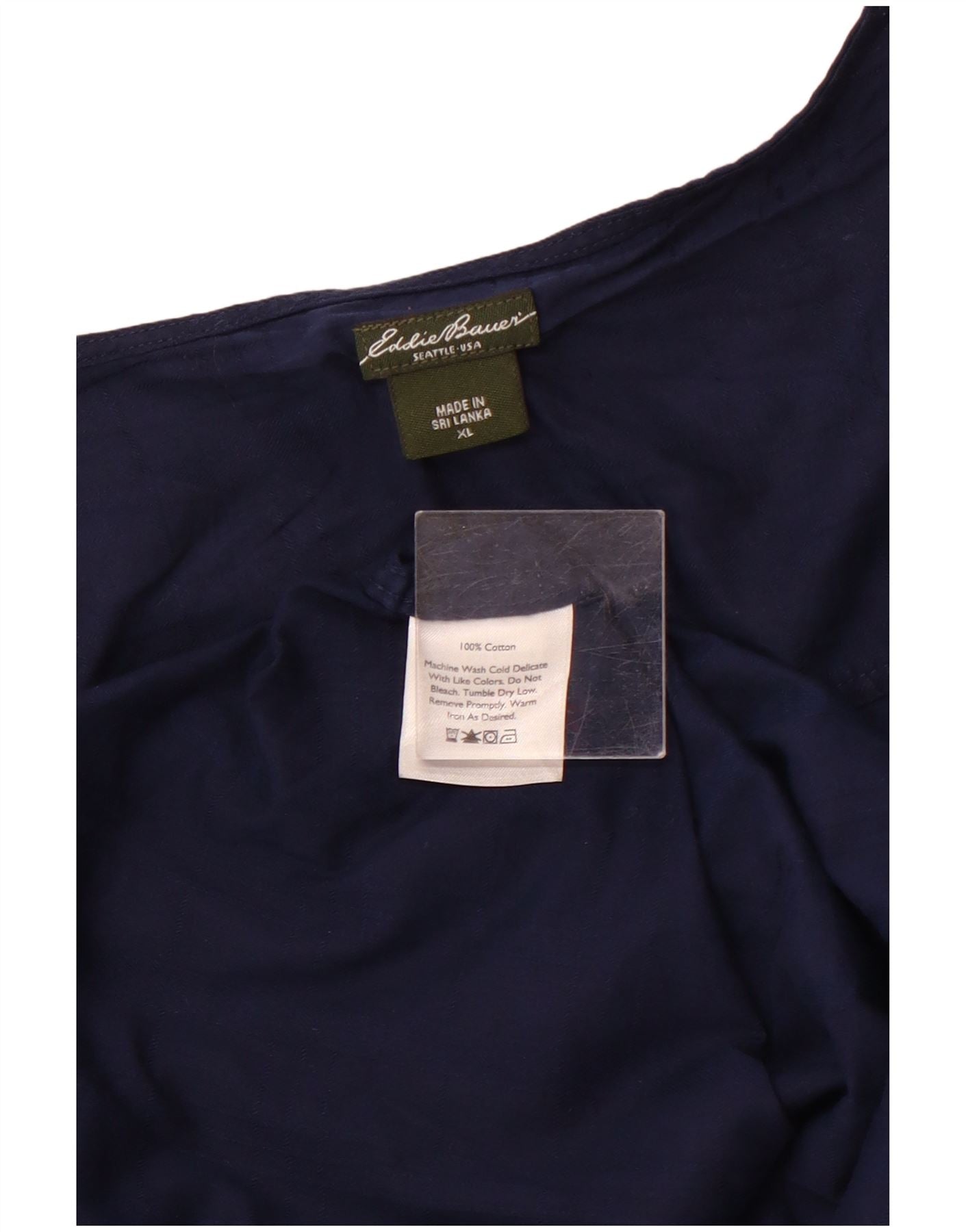 Blusa feminina EDDIE BAUER manga 3/4 UK 18 XL azul marinho algodão