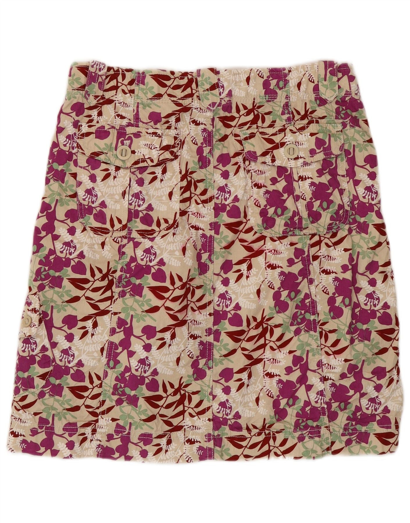 EDDIE BAUER Saia feminina evasê US 8 médio W30 algodão floral bege