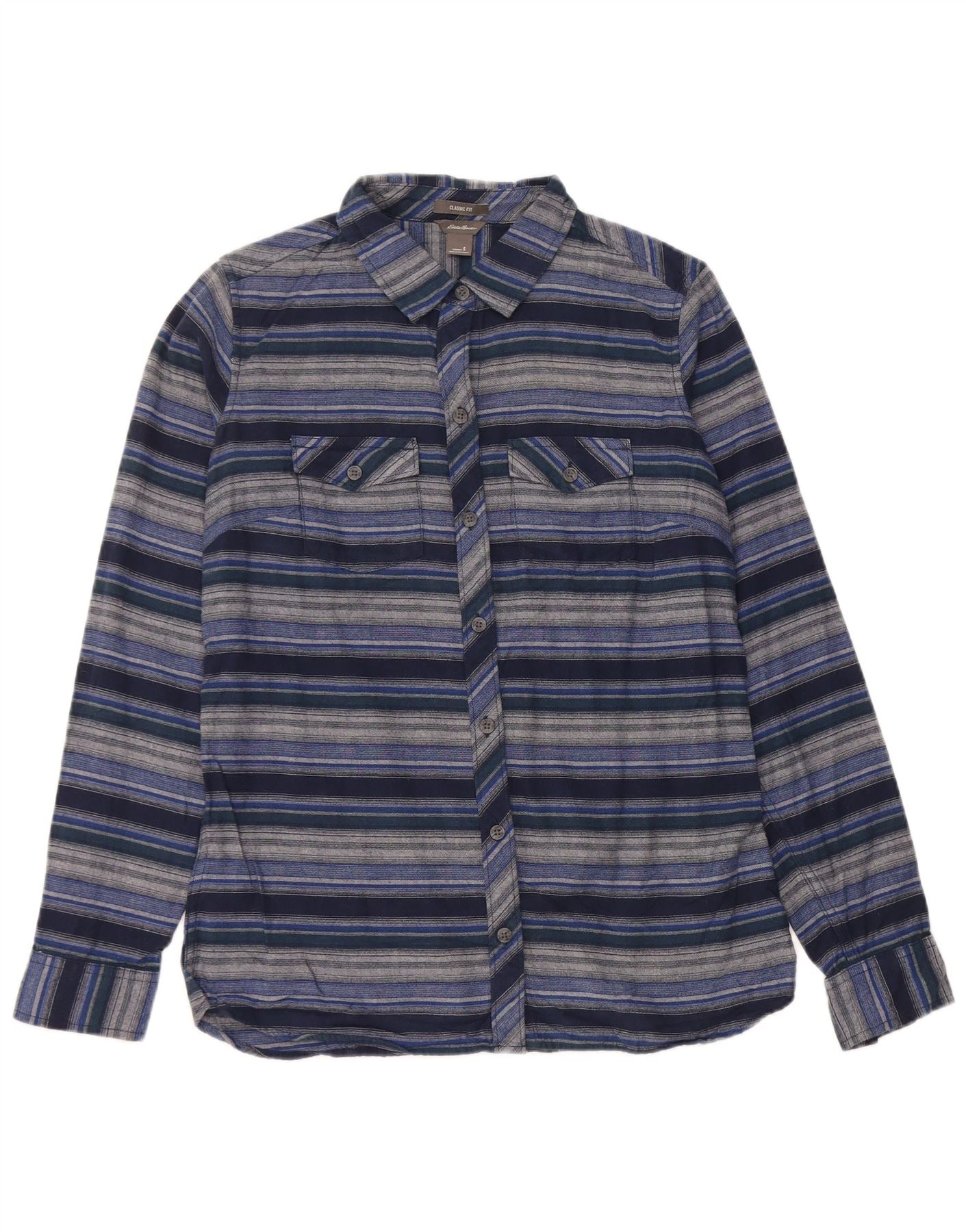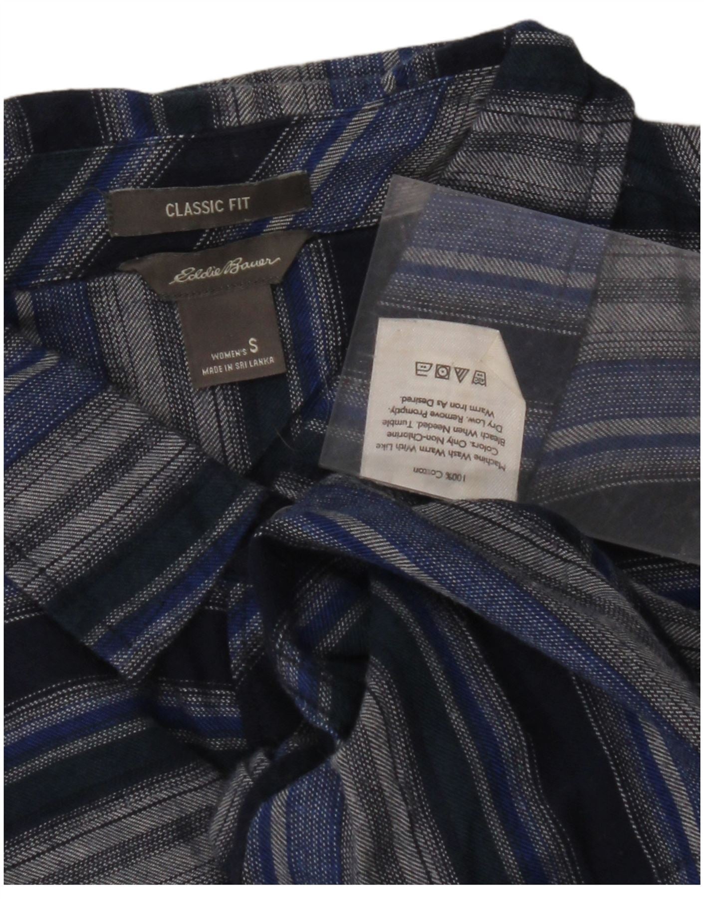 EDDIE BAUER Camisa feminina de flanela de ajuste clássico Reino Unido 10 pequena listrada azul marinho
