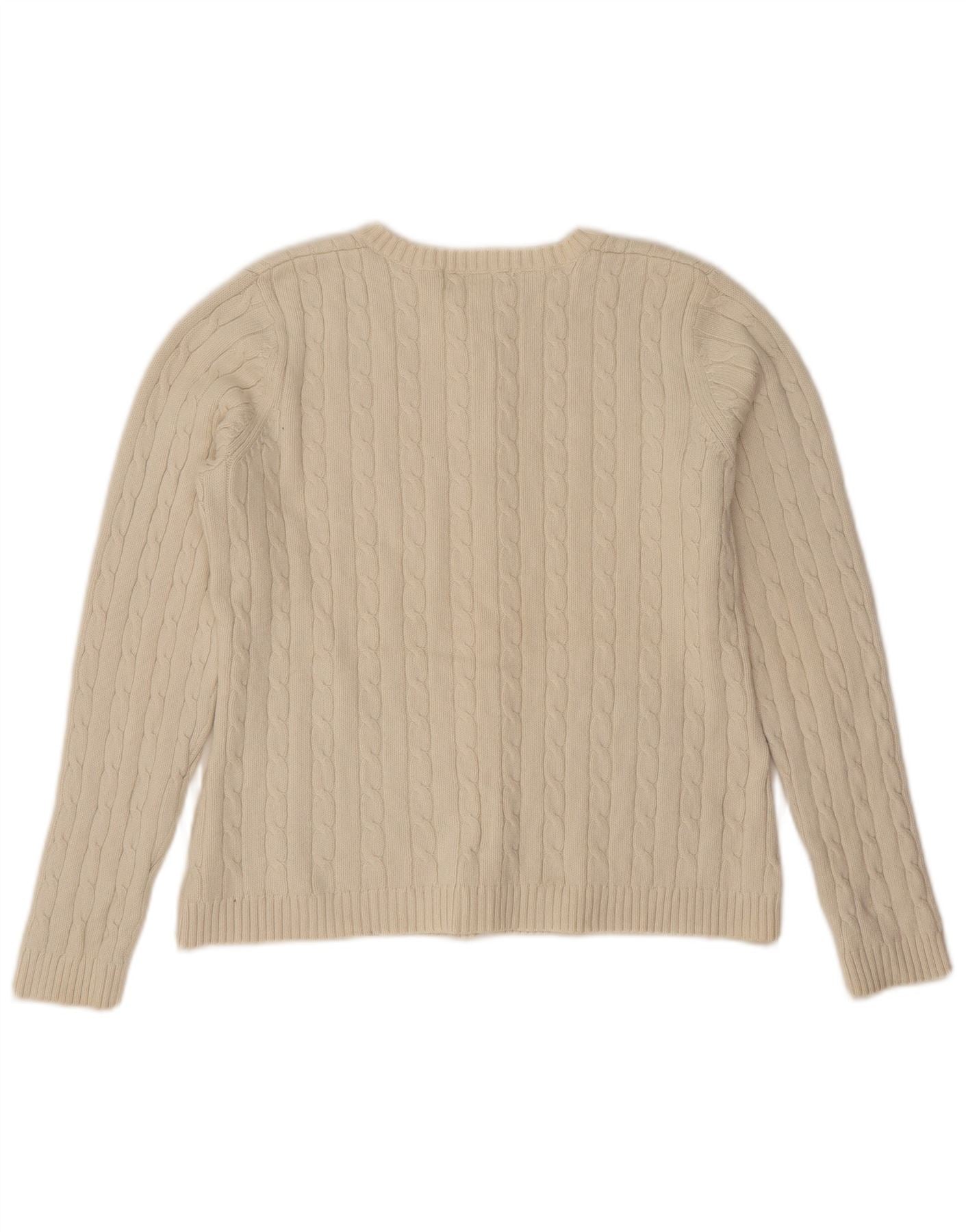 Suéter cardigã feminino EDDIE BAUER UK 14 médio off white algodão
