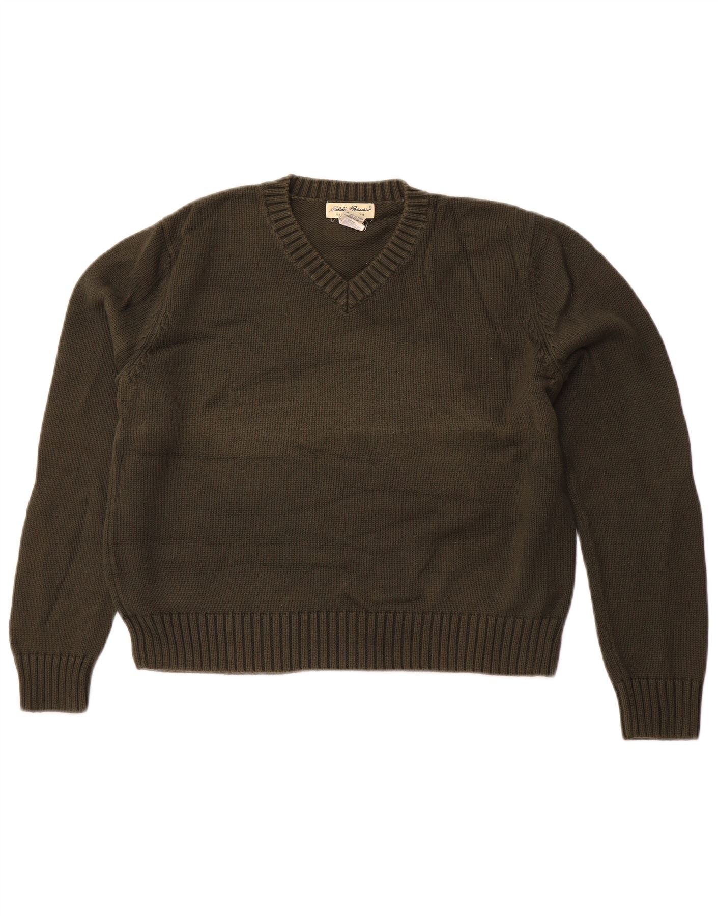 EDDIE BAUER Suéter feminino curto com decote em V Reino Unido 16 algodão verde grande