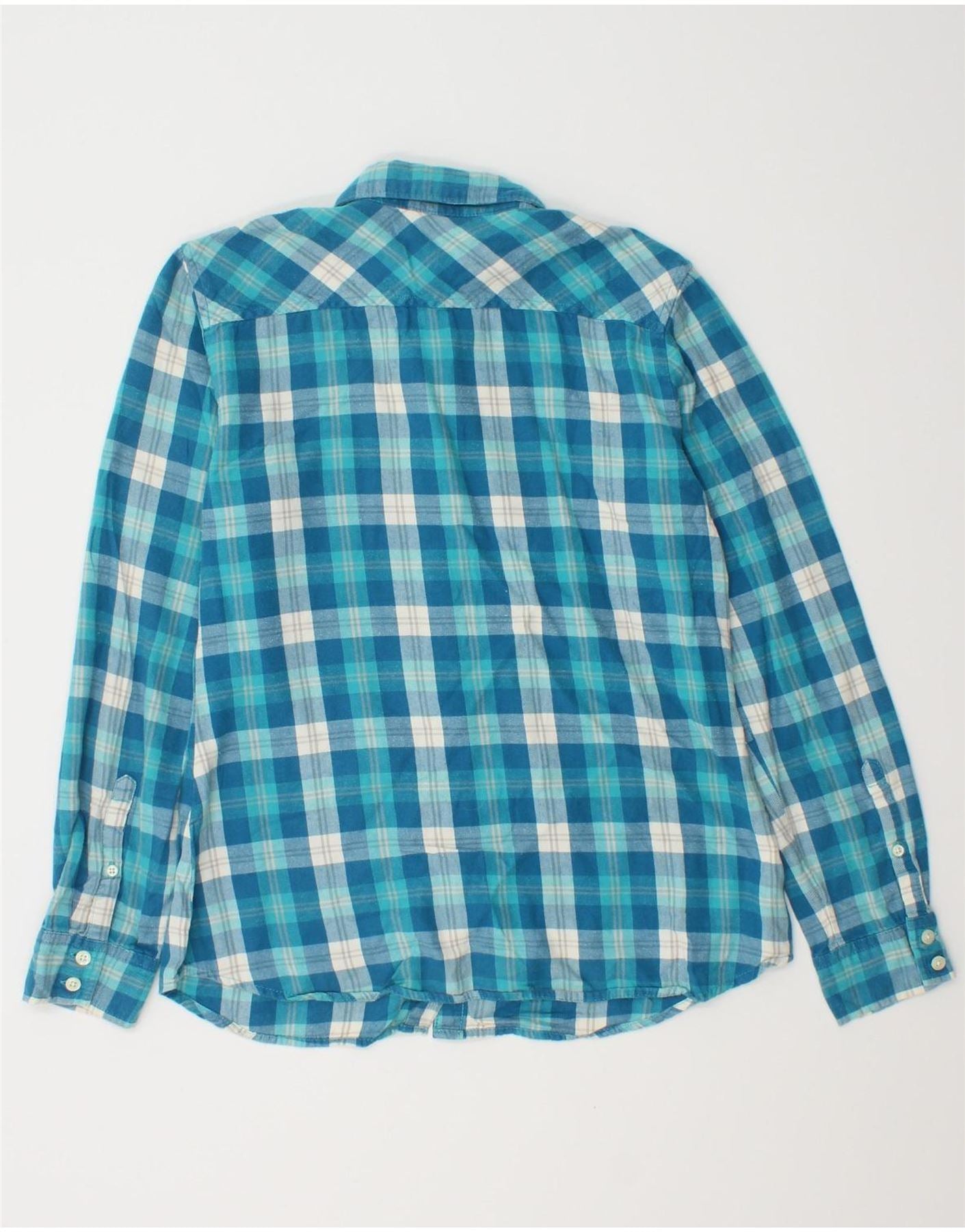 Camisa feminina de flanela EDDIE BAUER Reino Unido 10 algodão xadrez azul pequeno