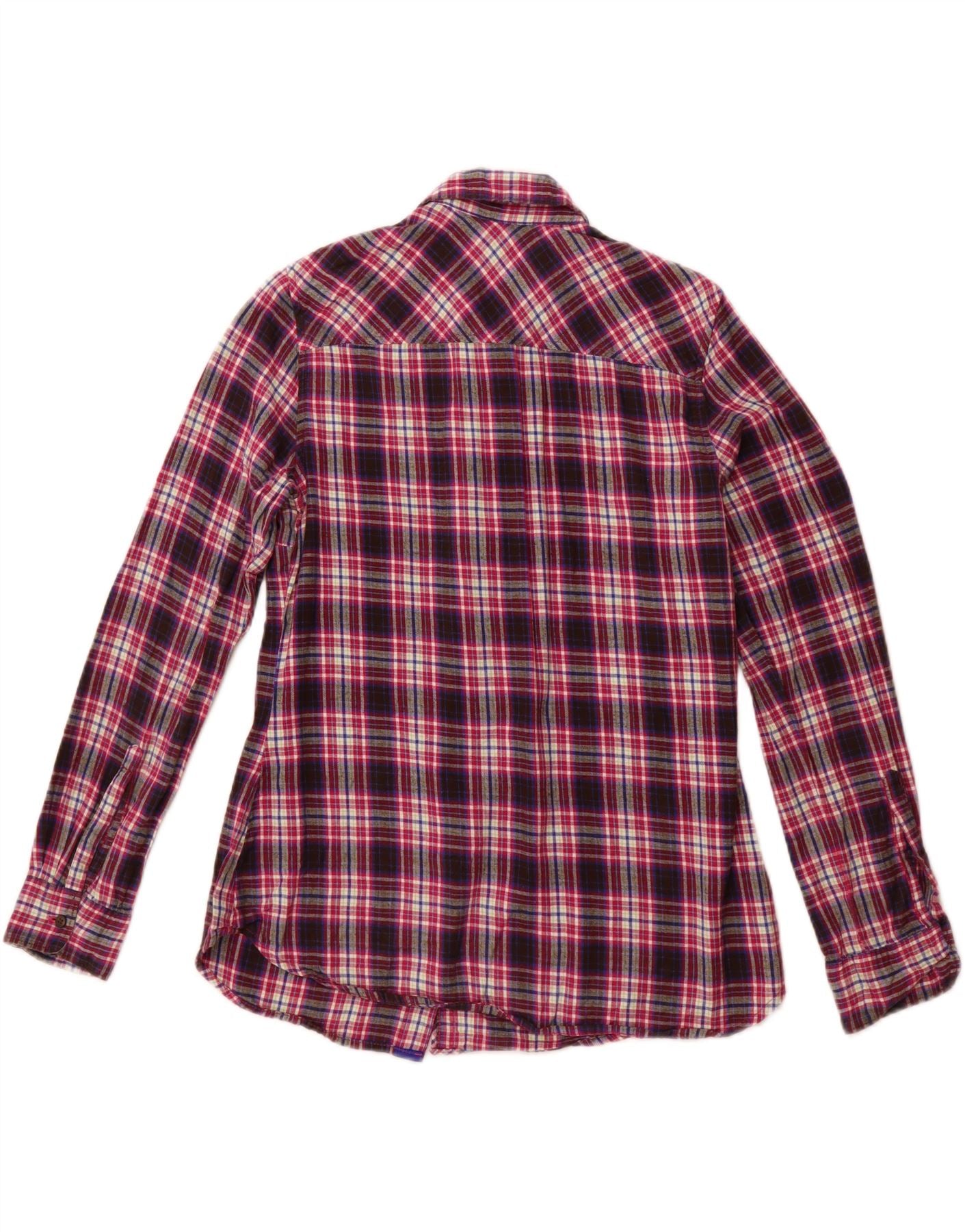 Camisa feminina de flanela EDDIE BAUER Reino Unido 12 algodão xadrez roxo médio