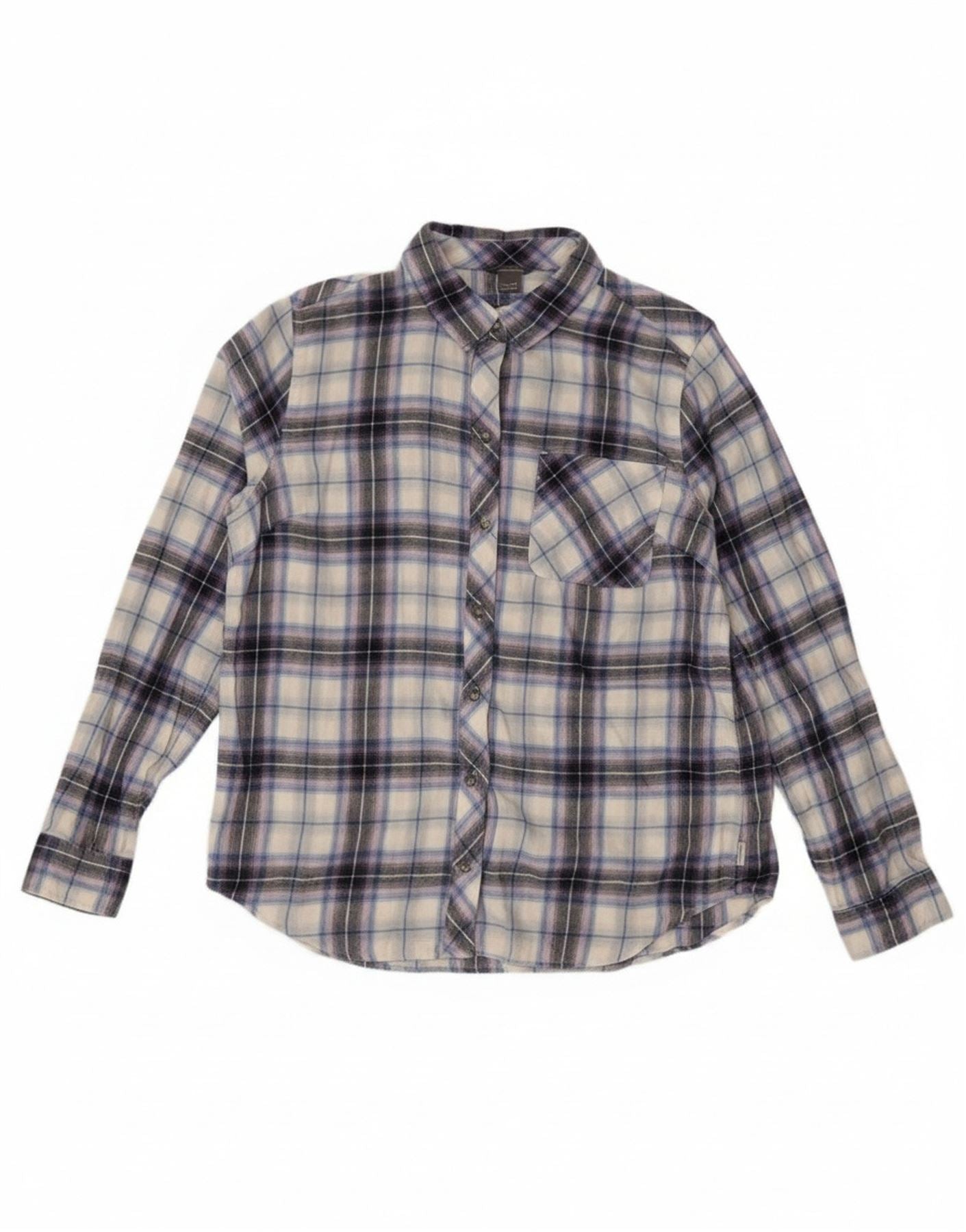 Camisa feminina de flanela Eddie Bauer Reino Unido 14 algodão xadrez roxo médio