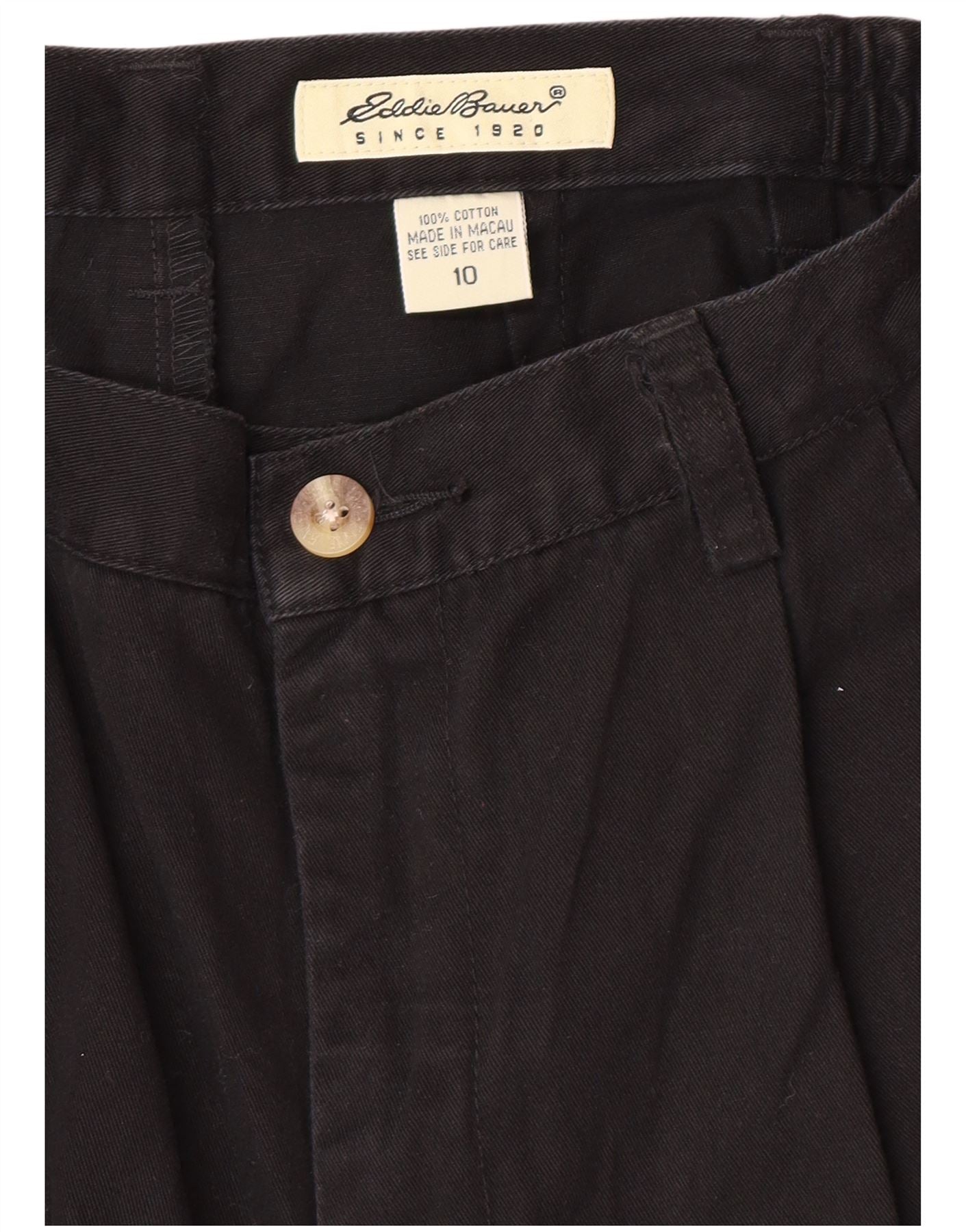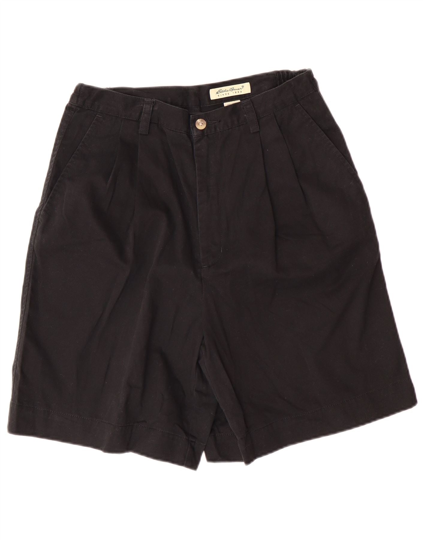 EDDIE BAUER Shorts chino feminino de cintura alta com pregas US 10 grandes W28 preto