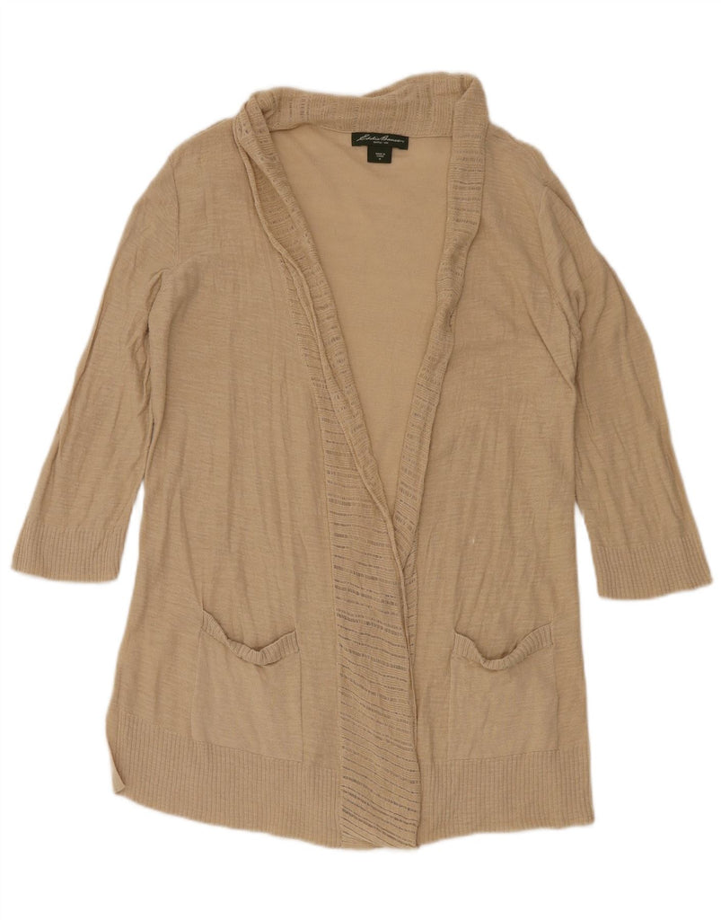 EDDIE BAUER Suéter cardigã feminino com palangre aberto Reino Unido 12 médio bege