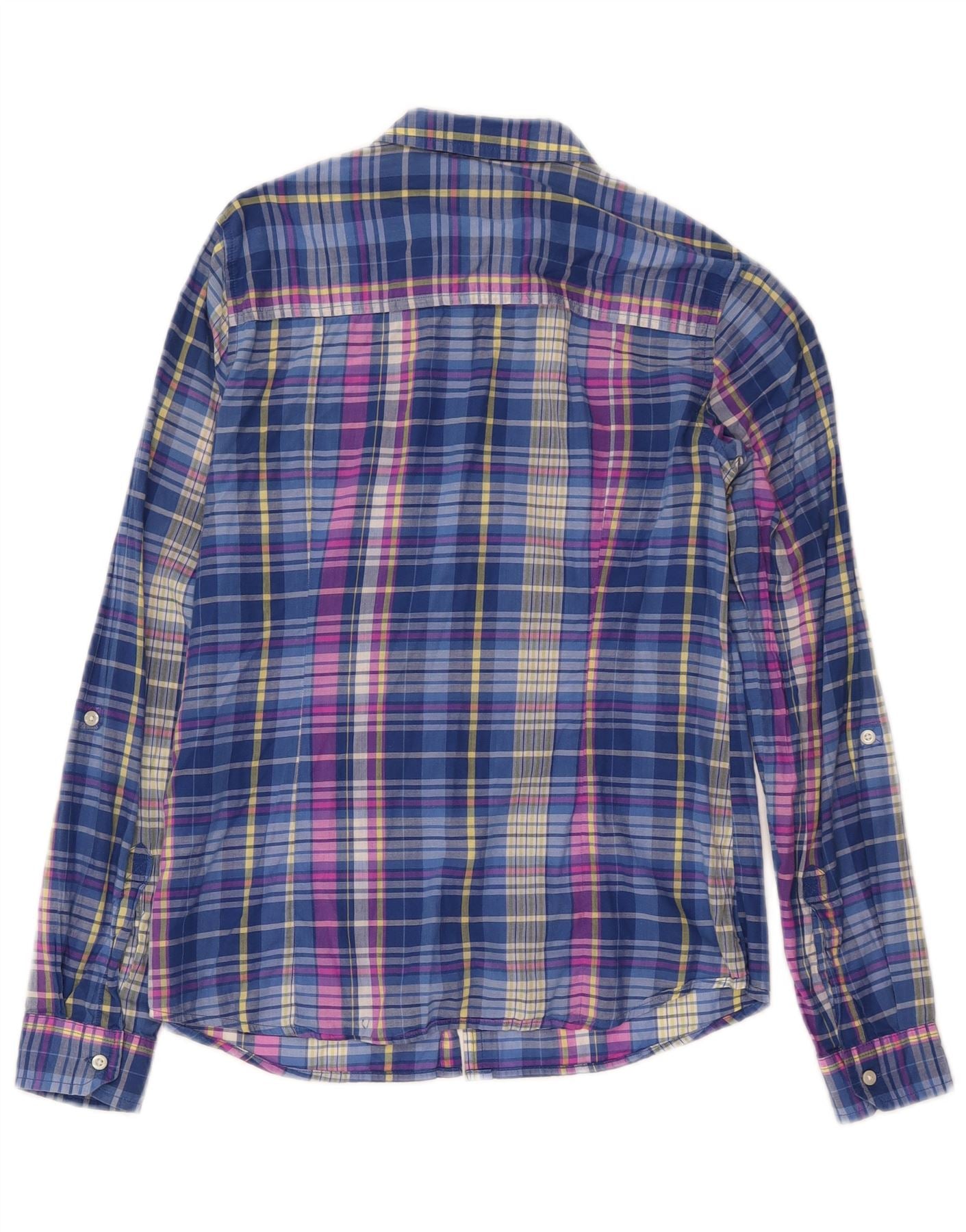 Camisa feminina Eddie Bauer de ajuste solto Reino Unido 6 XS azul xadrez algodão