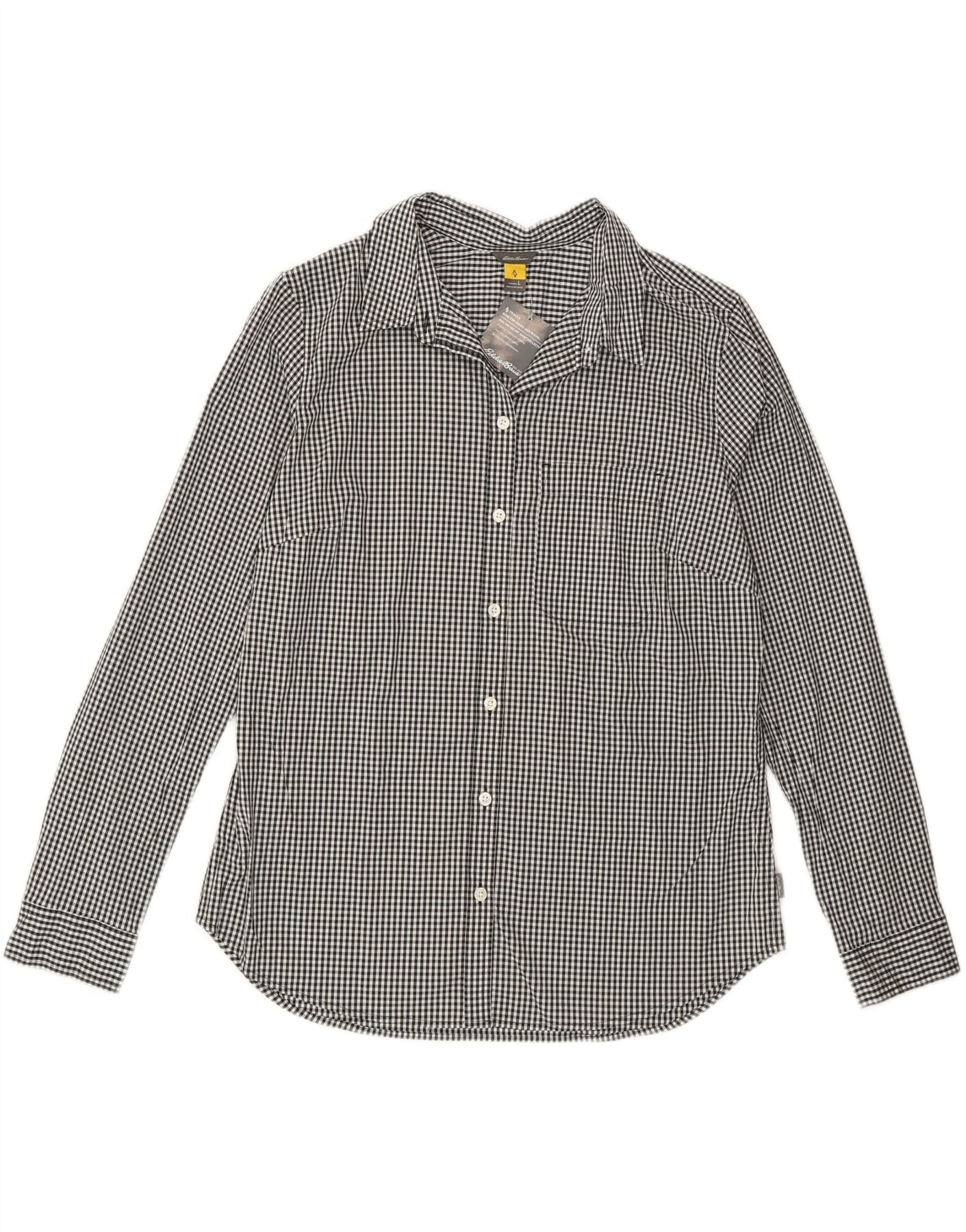 Camisa feminina Eddie Bauer Reino Unido 16 grande algodão guingão preto
