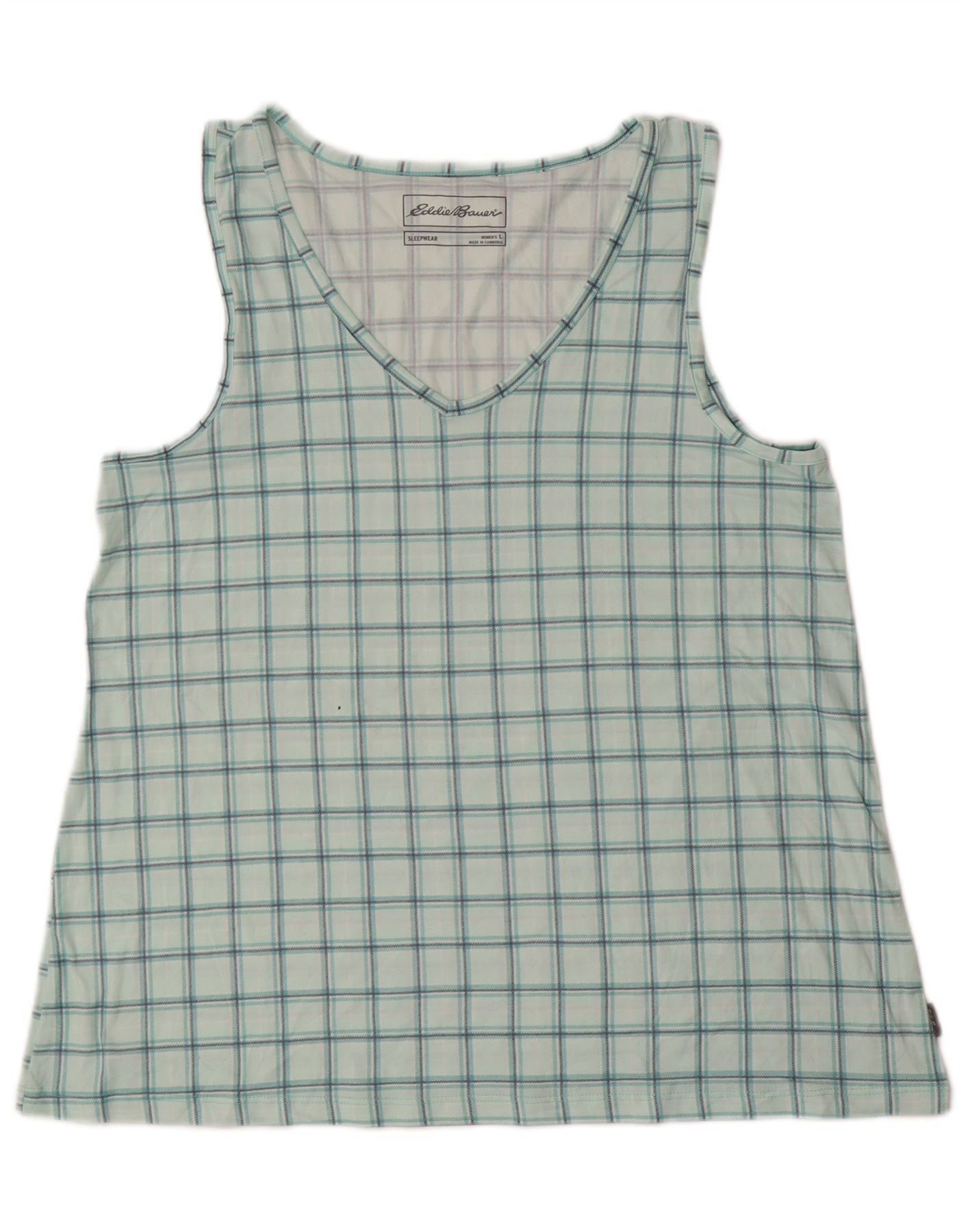 Colete feminino EDDIE BAUER UK 16 grande poliéster xadrez azul