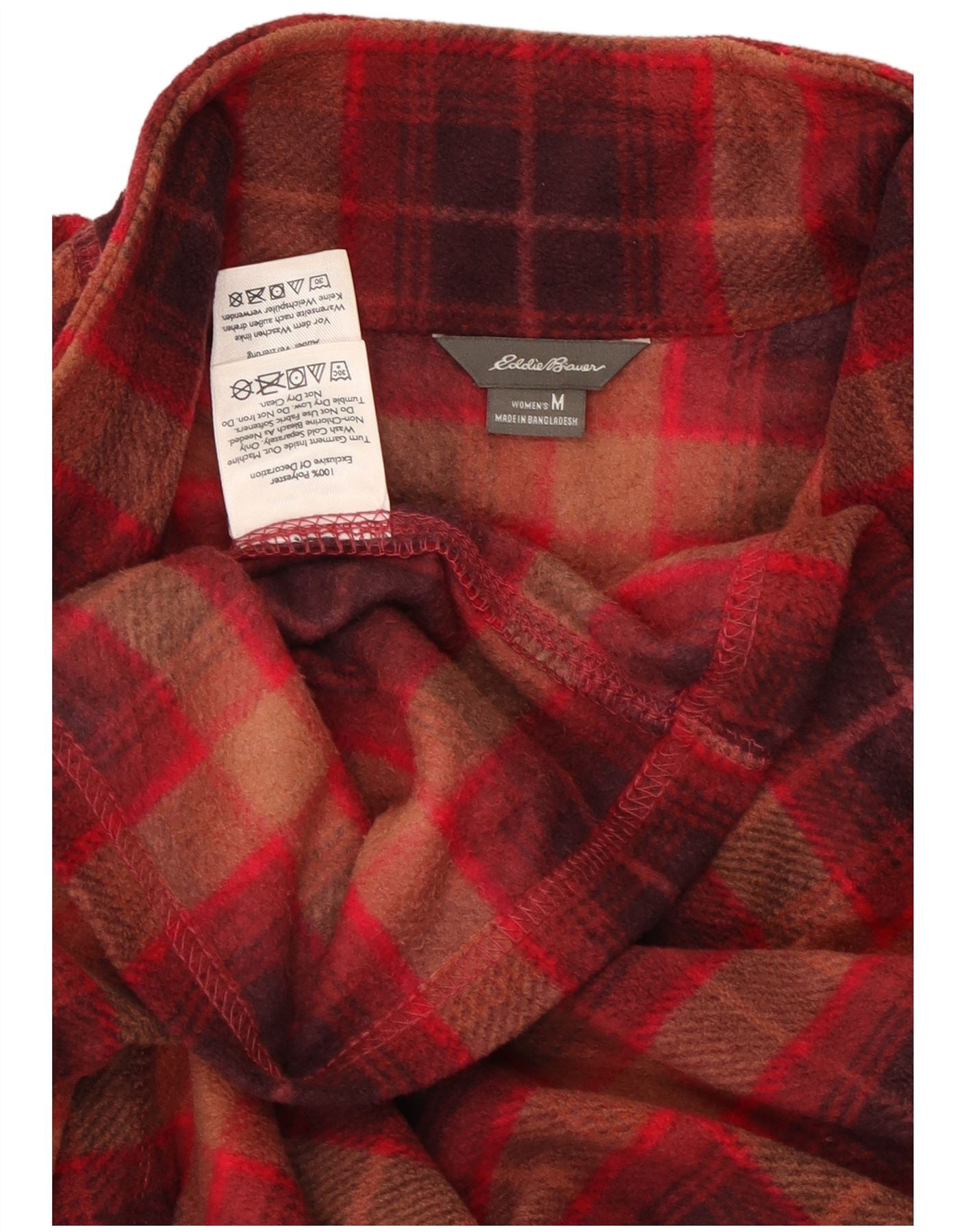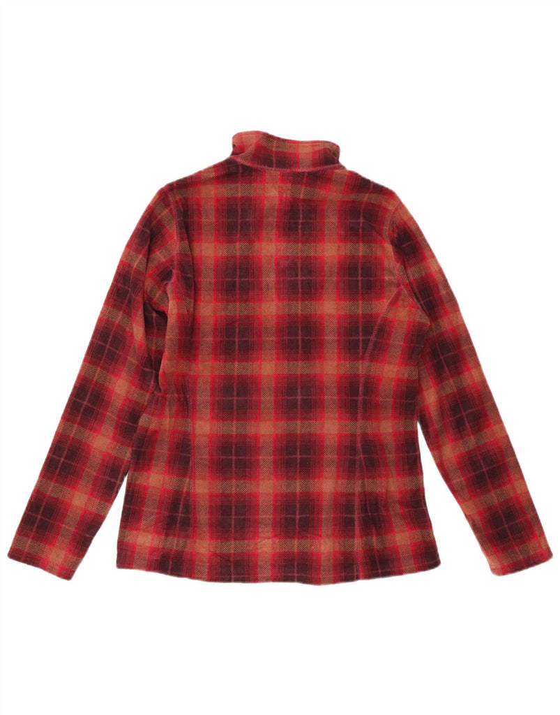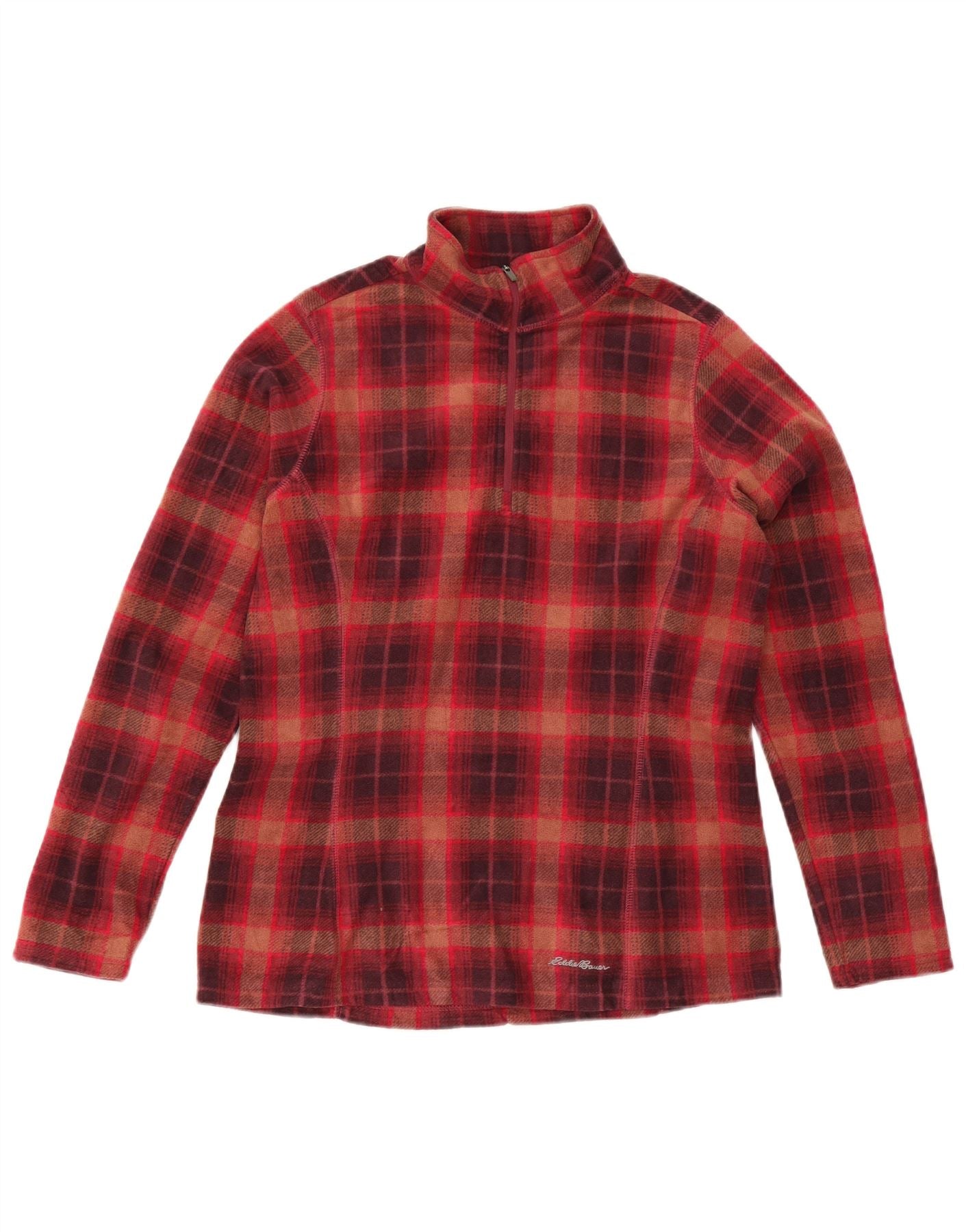 EDDIE BAUER Womens Zip Neck Fleece Jumper UK 14 Medium Burgundy Check