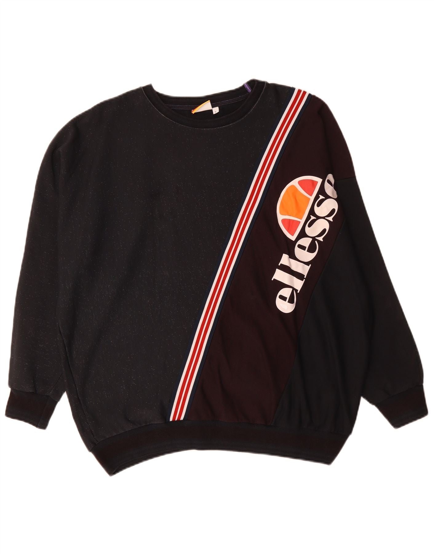 ELLESSE moletom gráfico masculino jumper grande algodão colorblock azul marinho