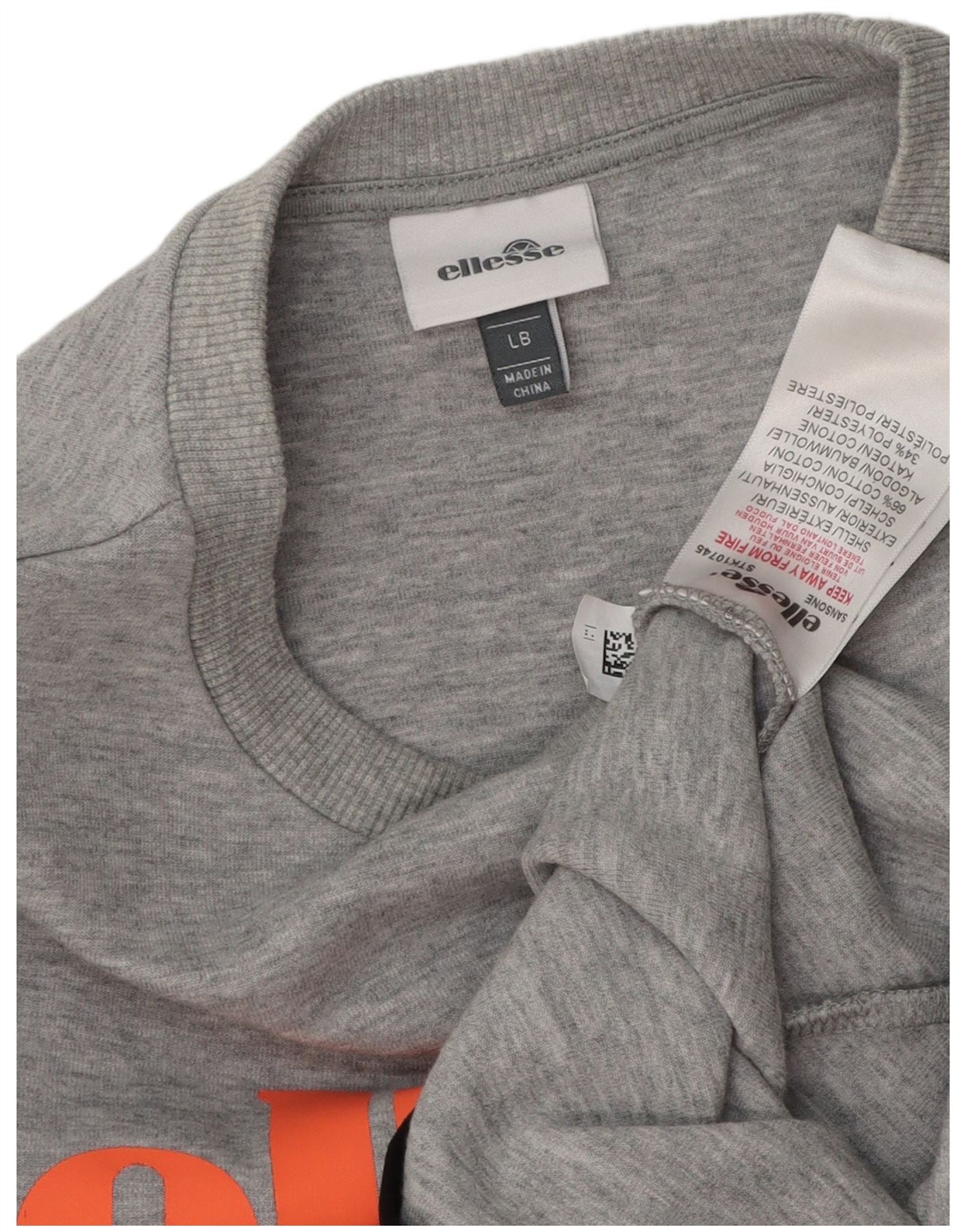 ELLESSE moletom feminino com estampa gráfica UK 14 grande algodão manchado cinza