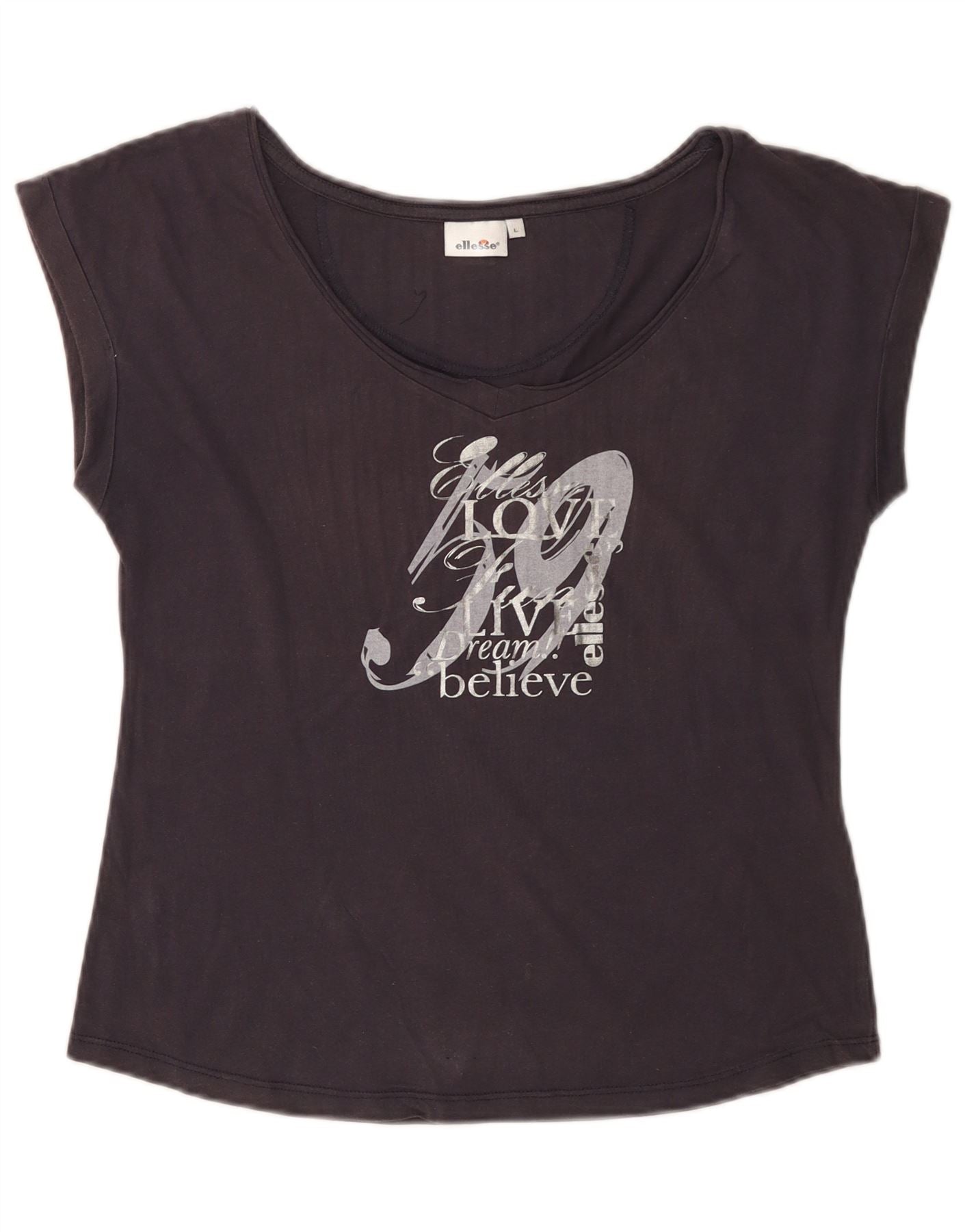 Camiseta feminina gráfica ELLESSE UK 14 grande algodão azul marinho