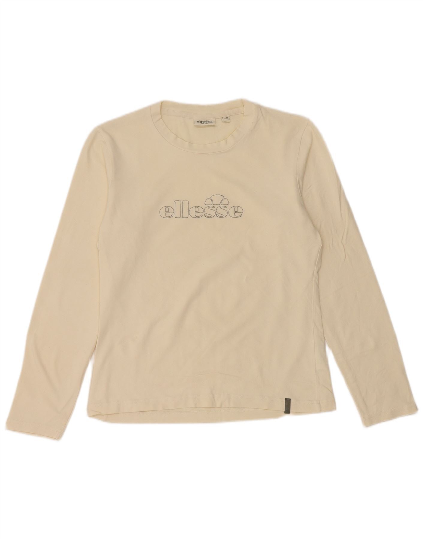 Top gráfico feminino ELLESSE manga comprida Reino Unido 16 grande algodão branco