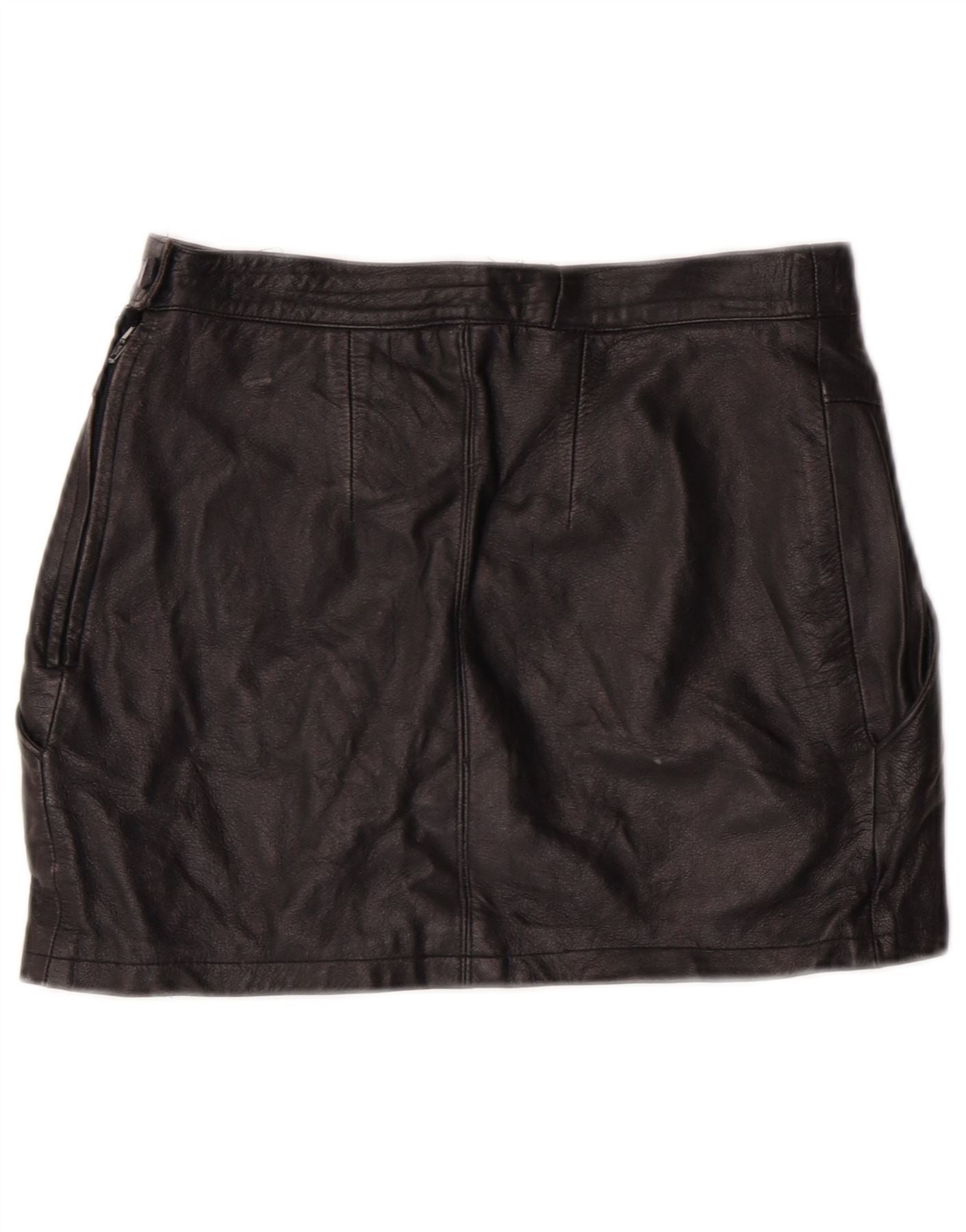 Saia feminina de couro de cintura alta EMBASSY IT 46 grande W26 couro preto