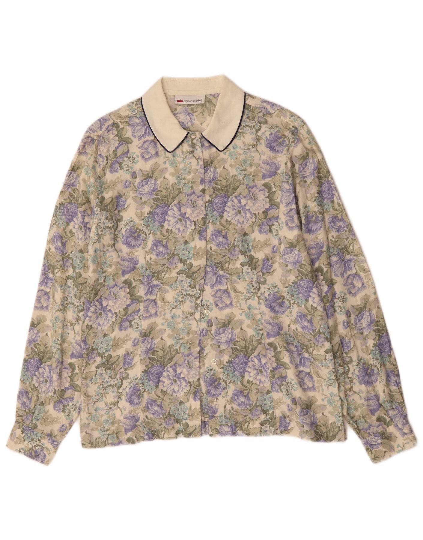Blusa feminina EMMANUEL SCHVILI UK 16 grande bege floral