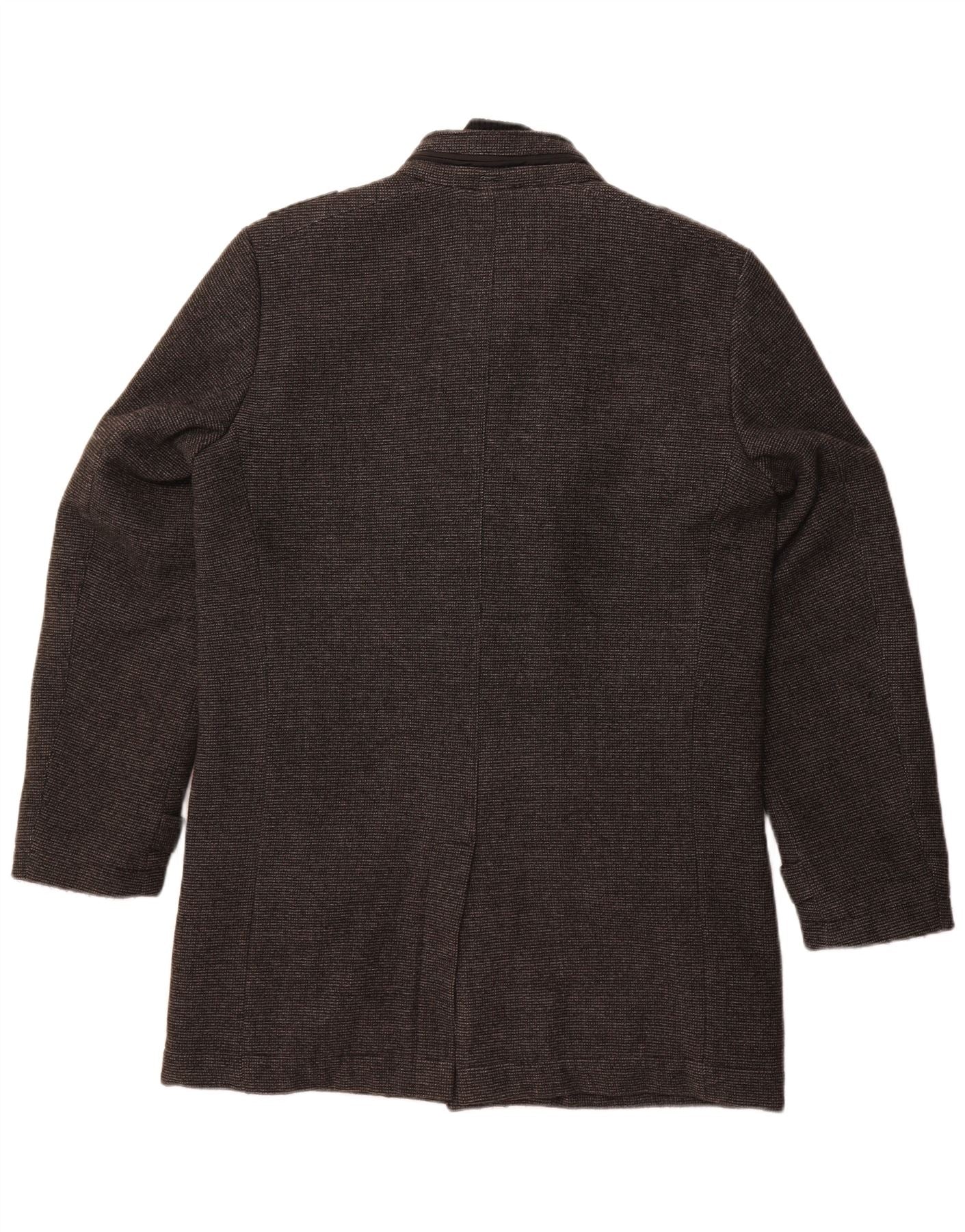 - Descrição da IA: Este casaco masculino Engbers é confeccionado em uma sofisticada mistura de poliéster cinza, oferecendo uma textura refinada. Possui um decote clássico com gola e botões frontais completos para uma aparência elegante. As mangas compridas proporcionam ampla cobertura, enquanto o corte regular garante um uso confortável. Bolsos práticos estão integrados ao design. O casaco é totalmente forrado, aumentando seu toque estruturado e calor, tornando-o uma escolha versátil de agasalho.
